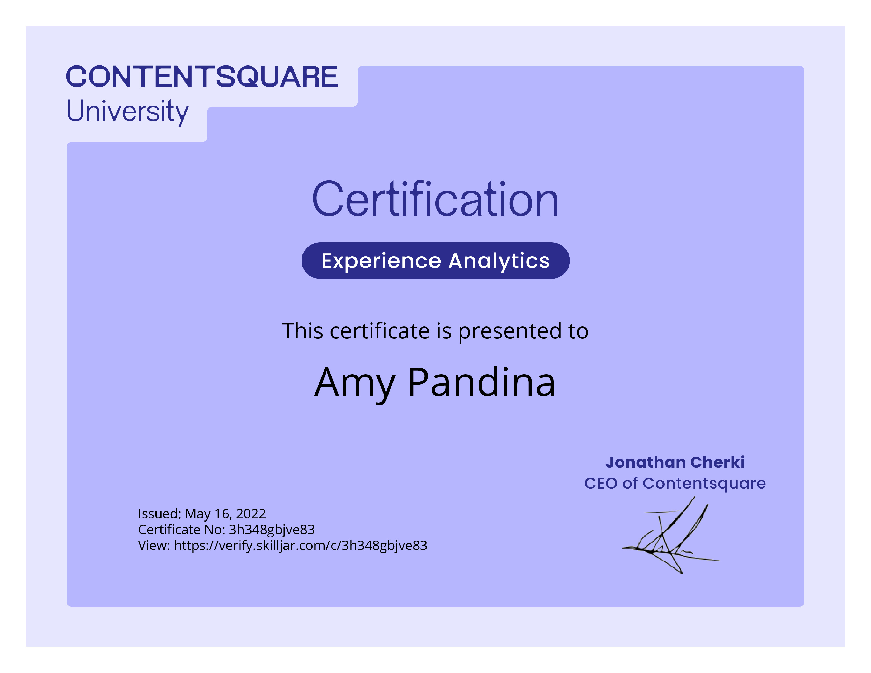 | Course Completed | Experience Analytics Web Fundamentals Certification |