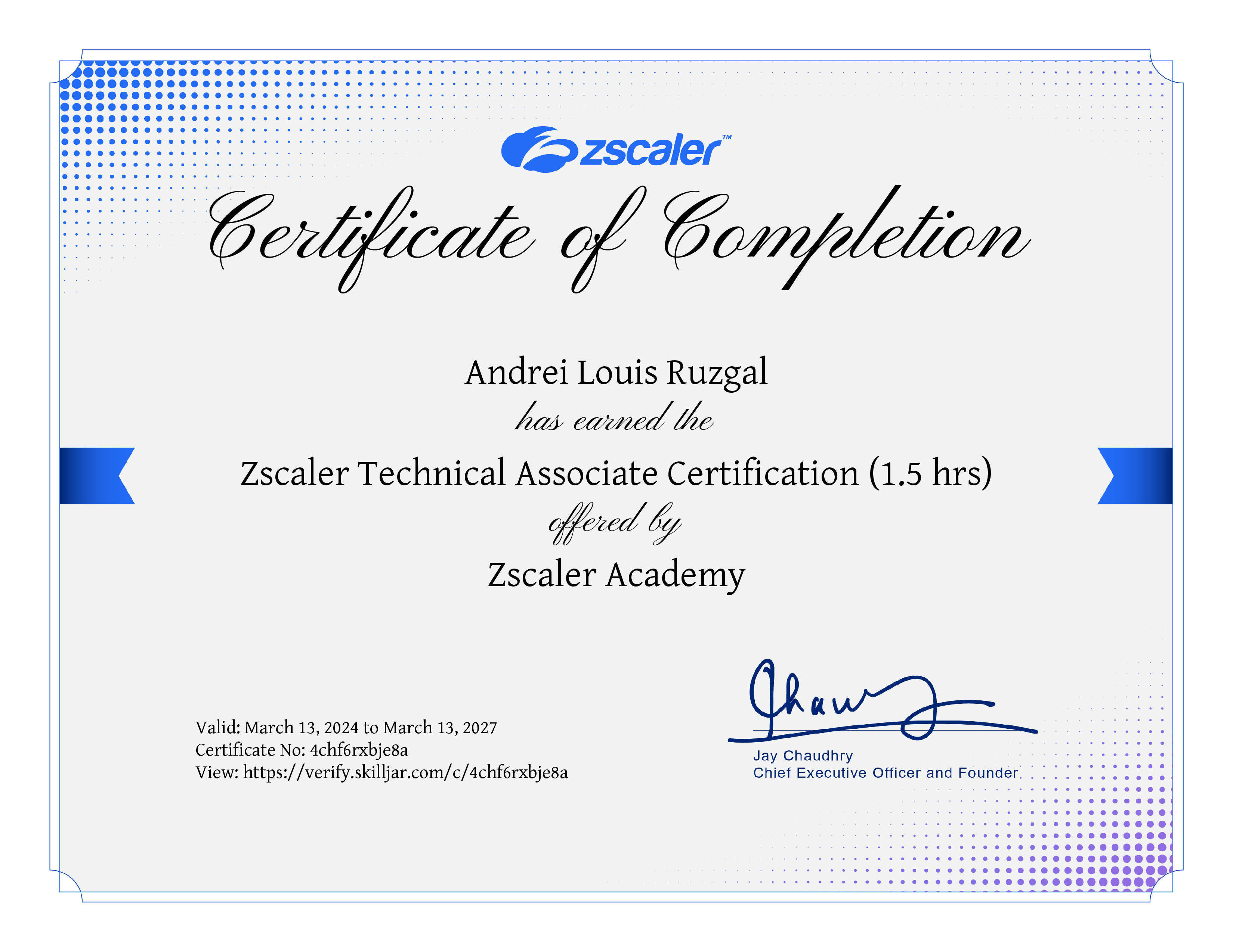 | Course Completed | Zscaler Technical Associate Test |