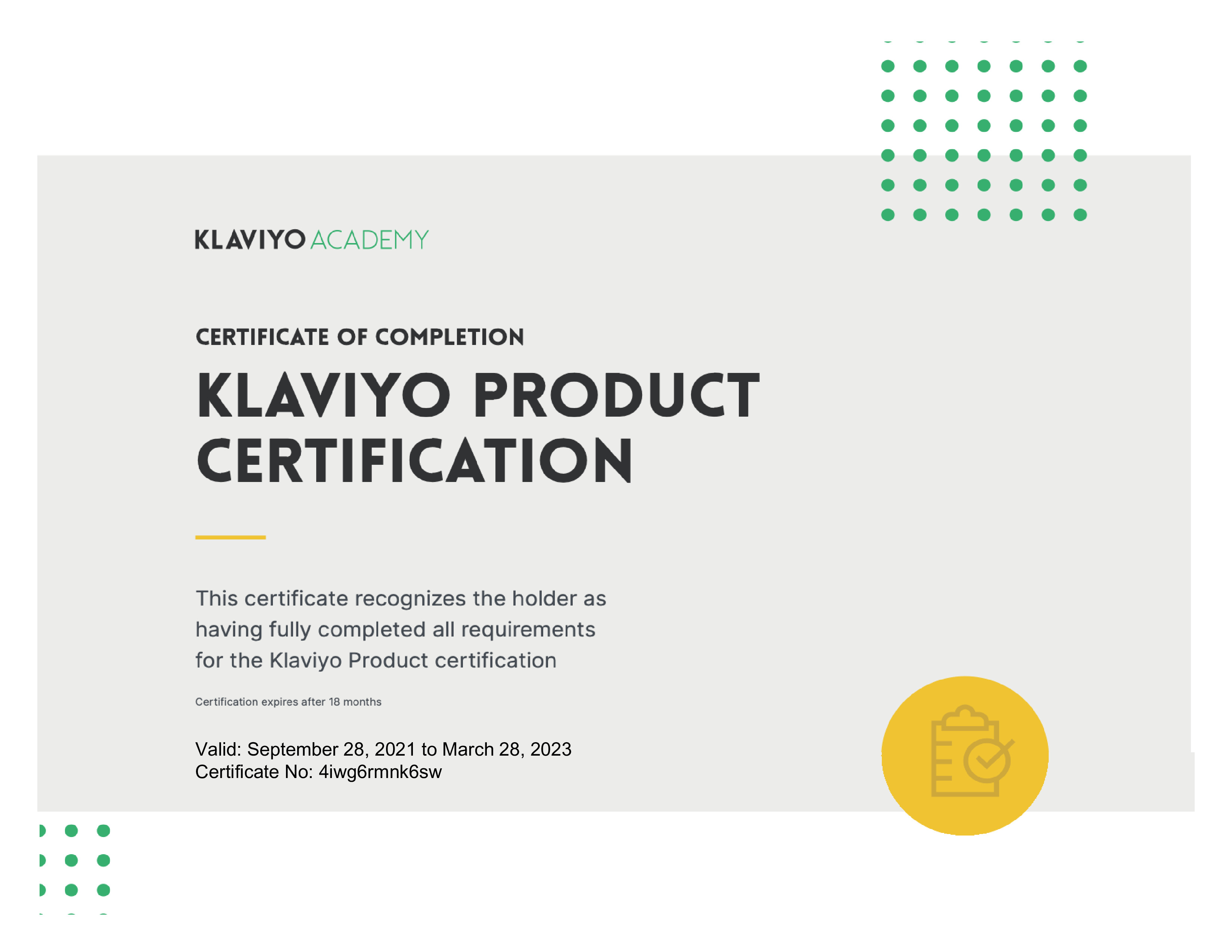 | Course Completed | Product certificate - conclusion and certificate exam |