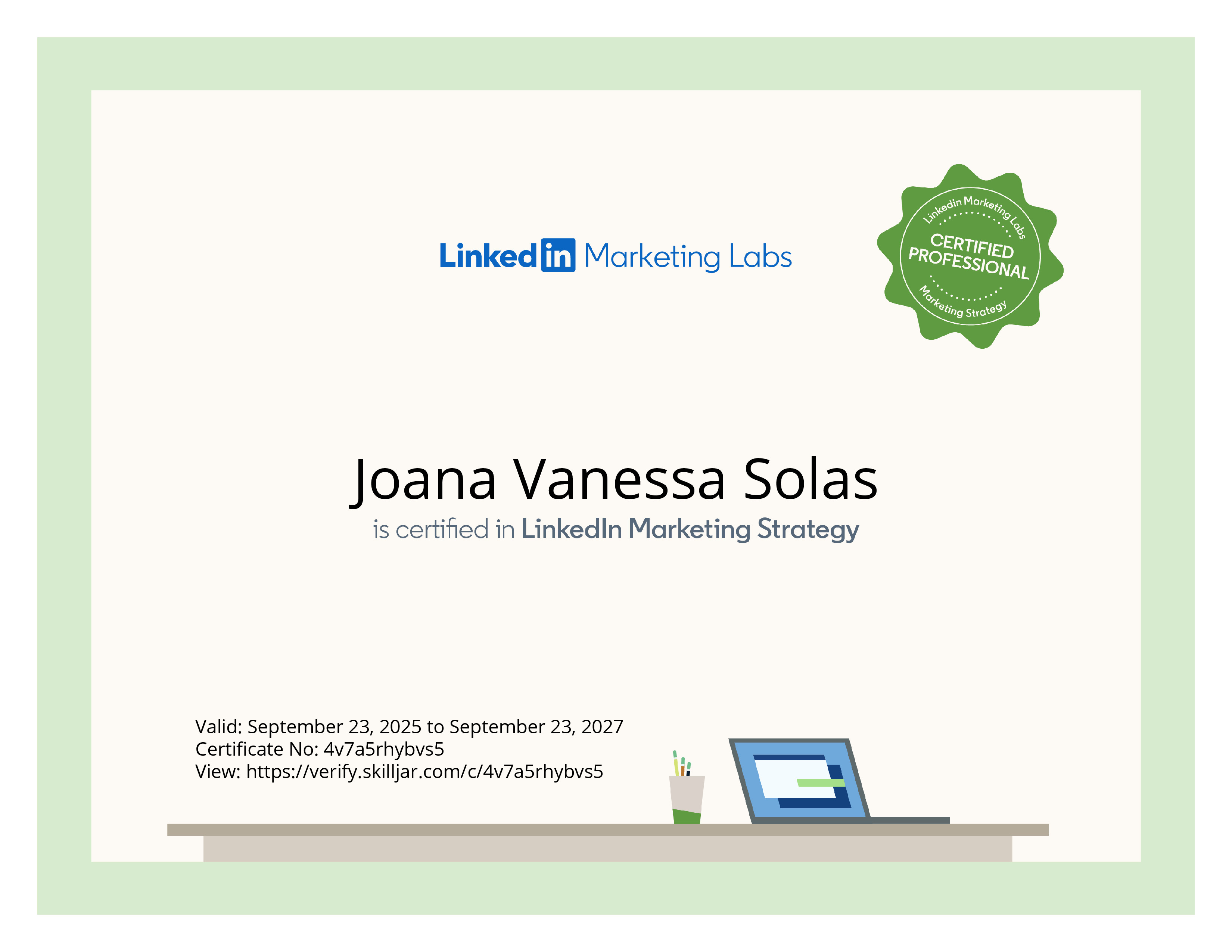 | Abgeschlossener Kurs | LinkedIn Marketing Strategy Certification |