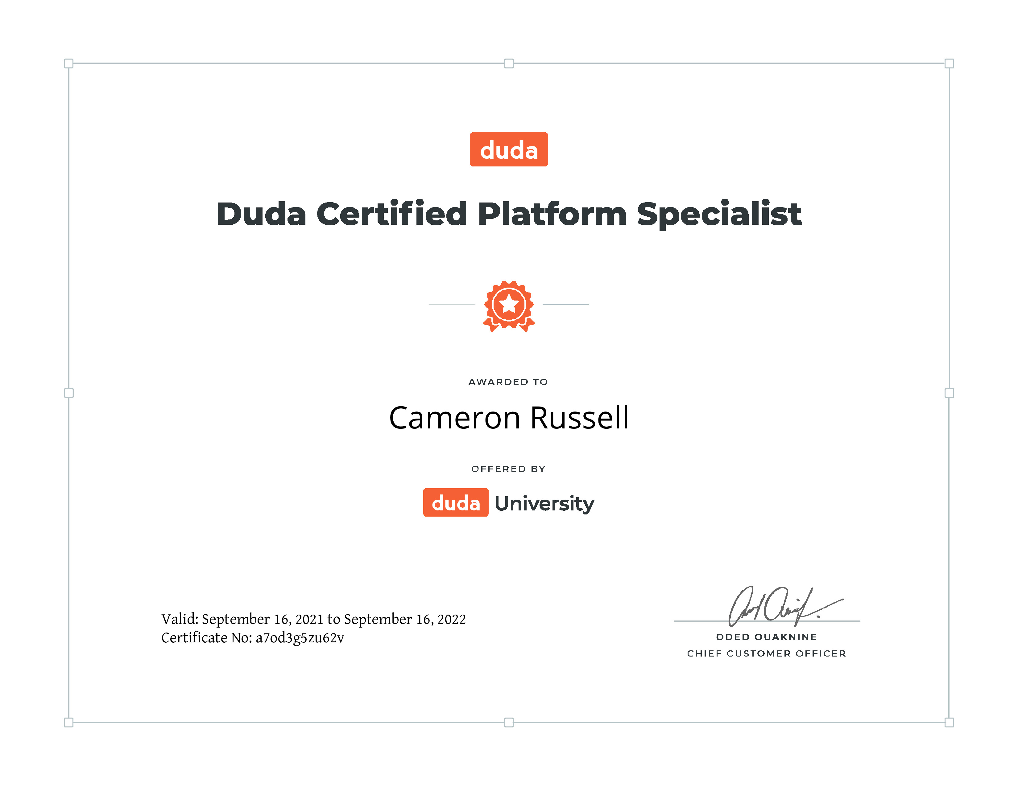 Course Completed Duda Certified Platform Specialist