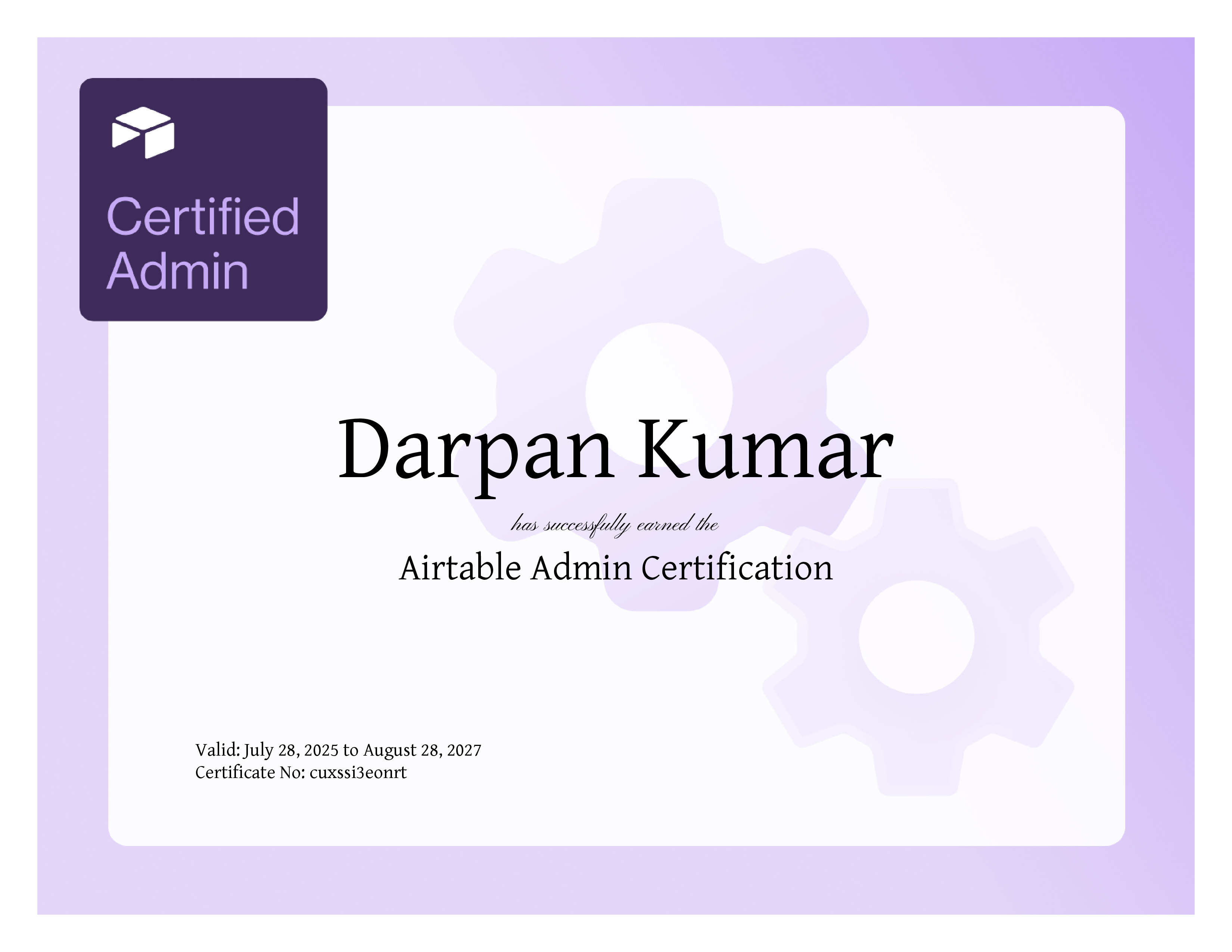 Course Completed Certification: Airtable Admin