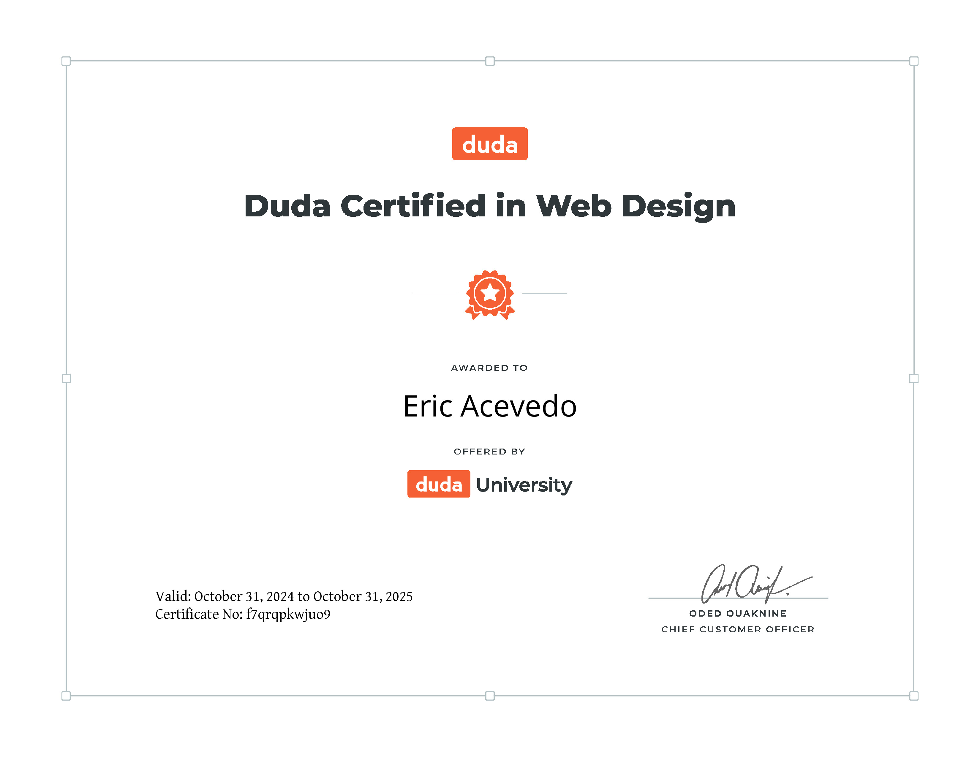 | Course Completed | Duda Certified in Web Design |