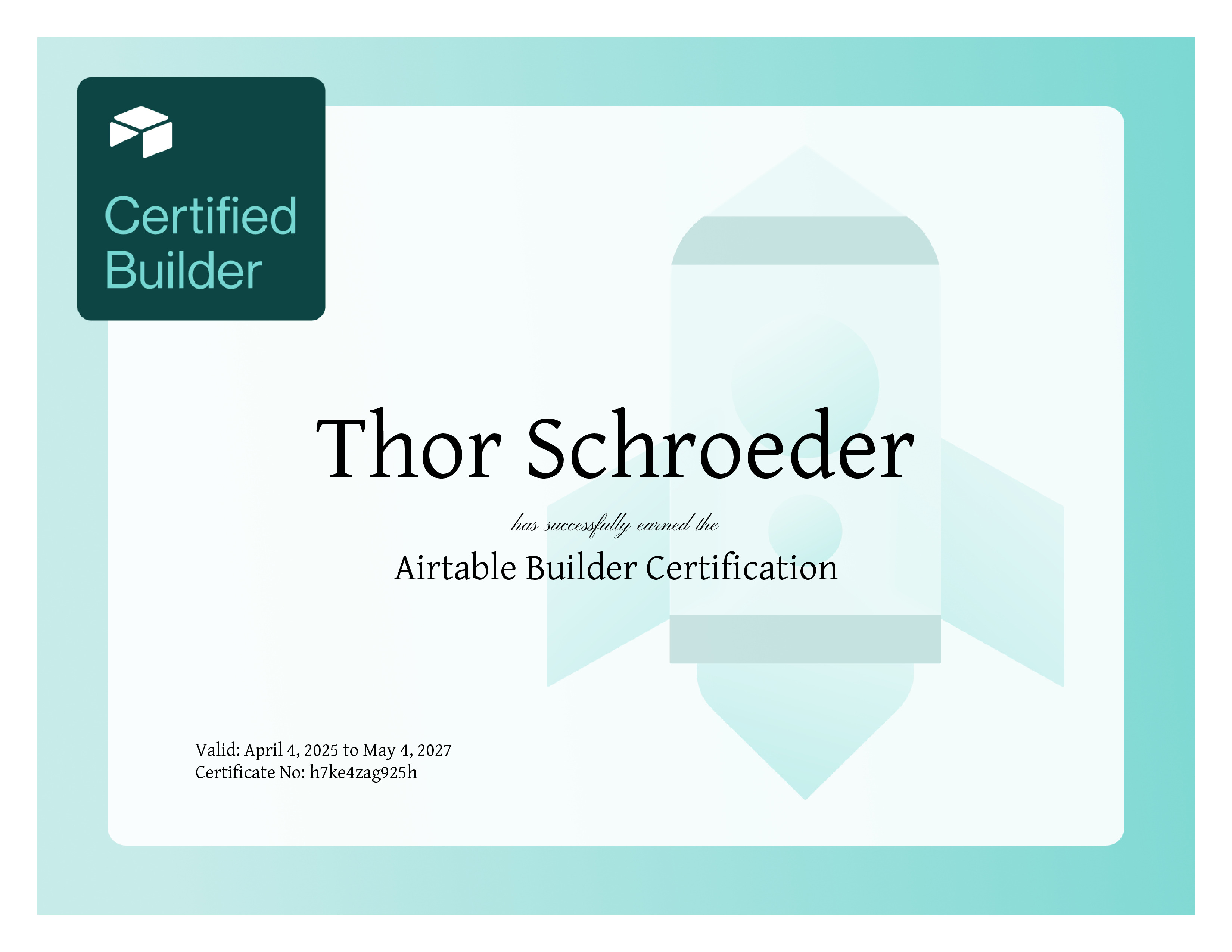 | Course Completed | Certification: Airtable Builder |