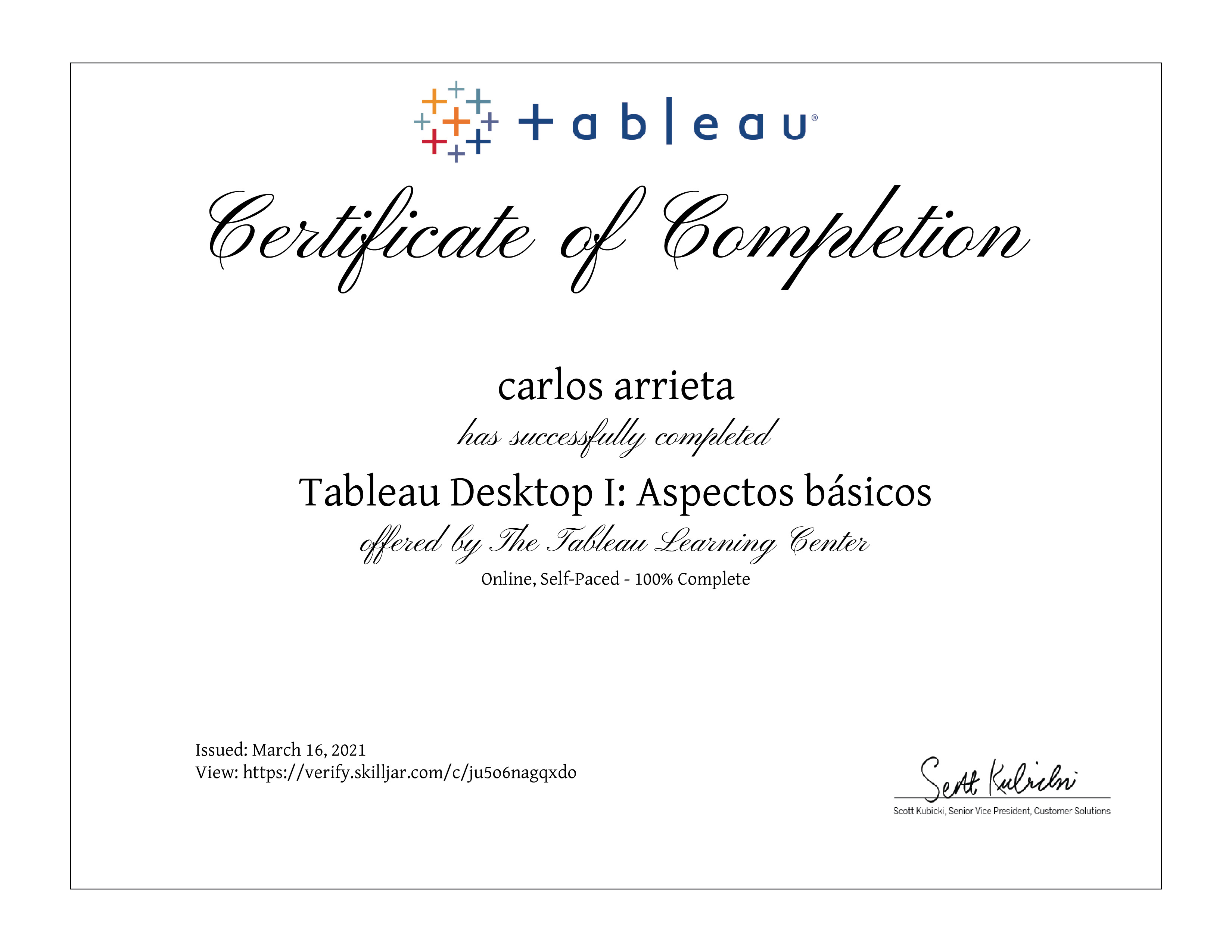 | Course Completed | Tableau Desktop I: Aspectos básicos |