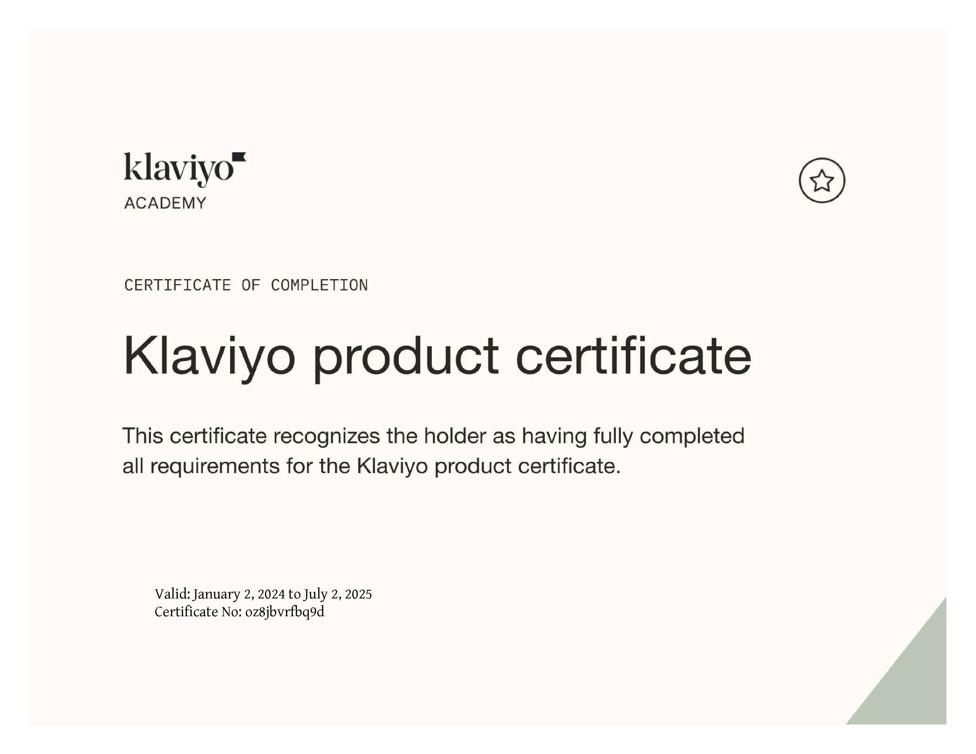 | Course Completed | Product certificate - conclusion and certificate exam |