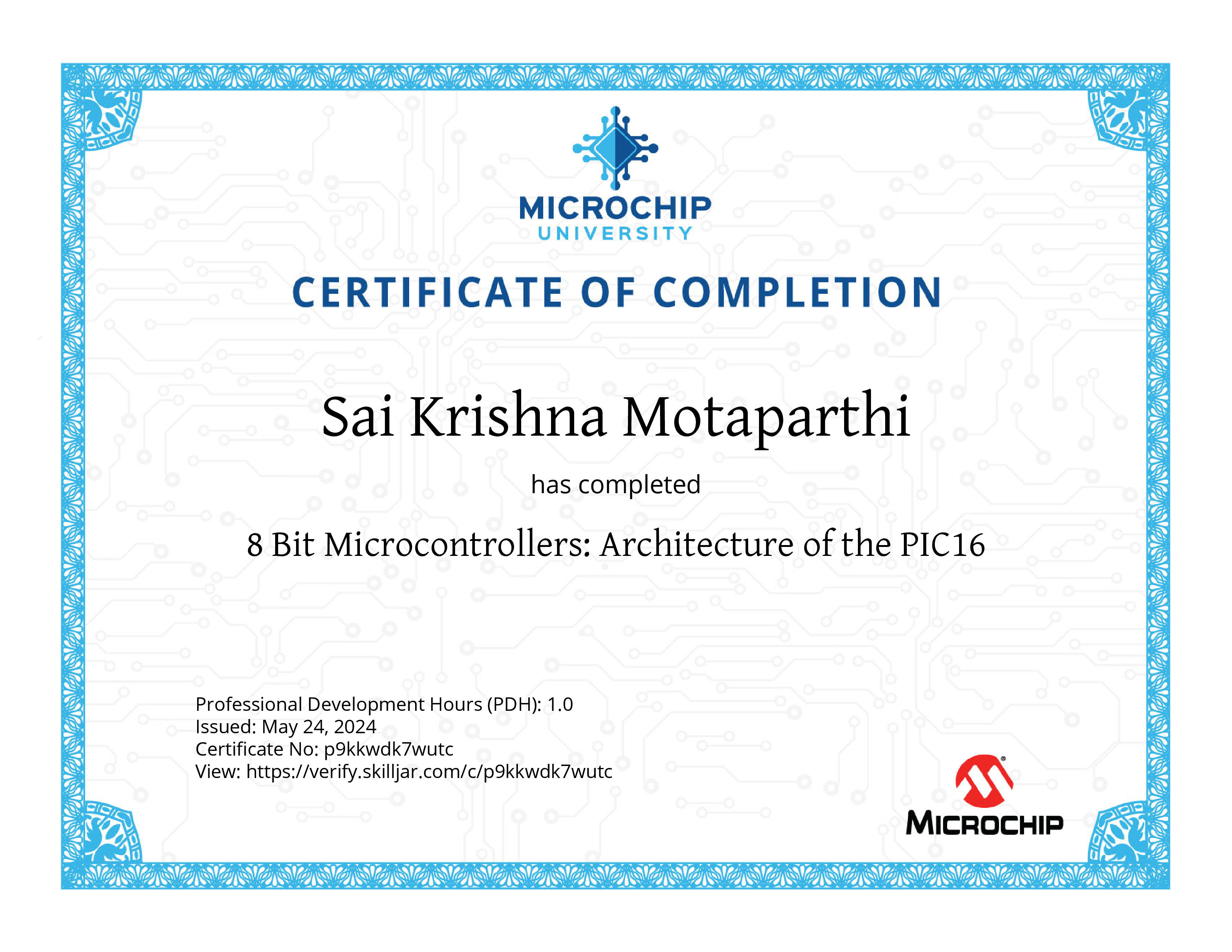 | Course Completed | 8 Bit Microcontrollers: Architecture of the PIC16 |