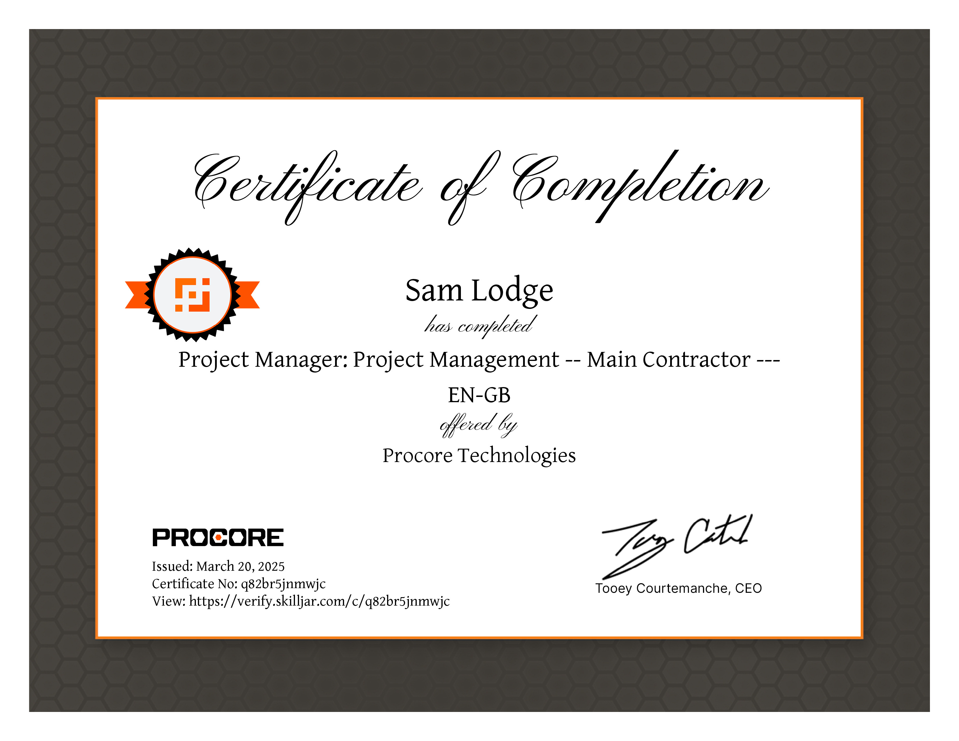 | Curso completado | Project Manager: Project Management -- Main Contractor --- EN-GB |