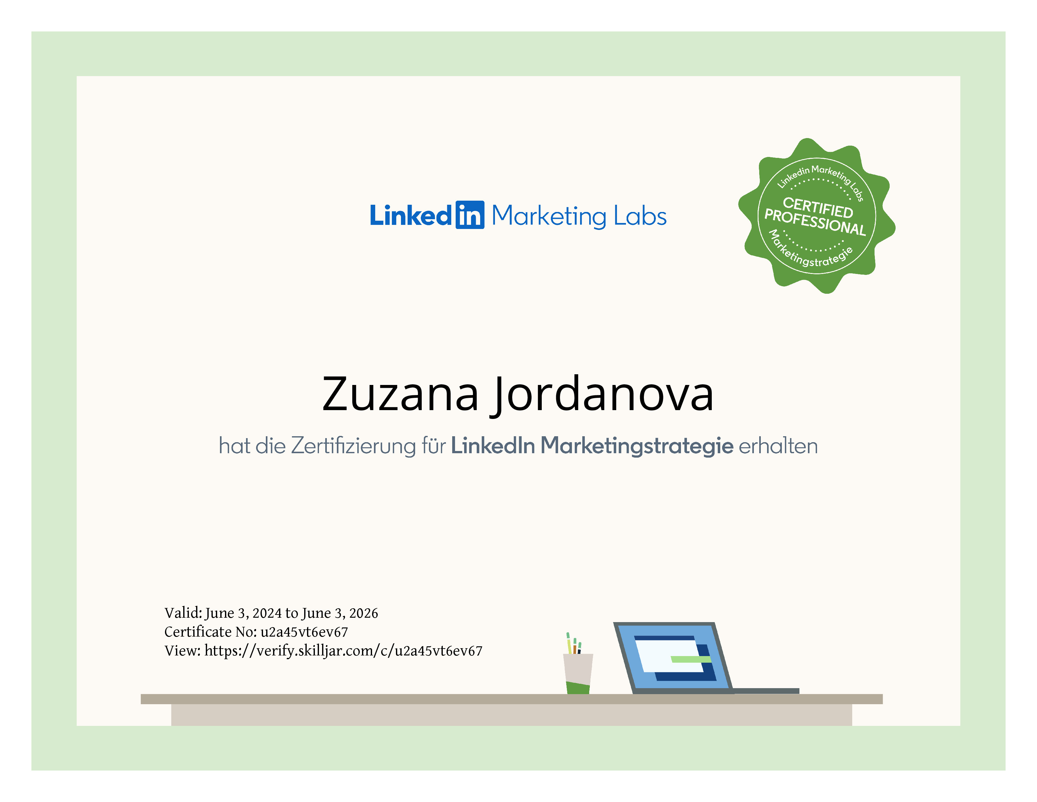| Abgeschlossener Kurs | LinkedIn Marketingstrategie-Zertifizierung |