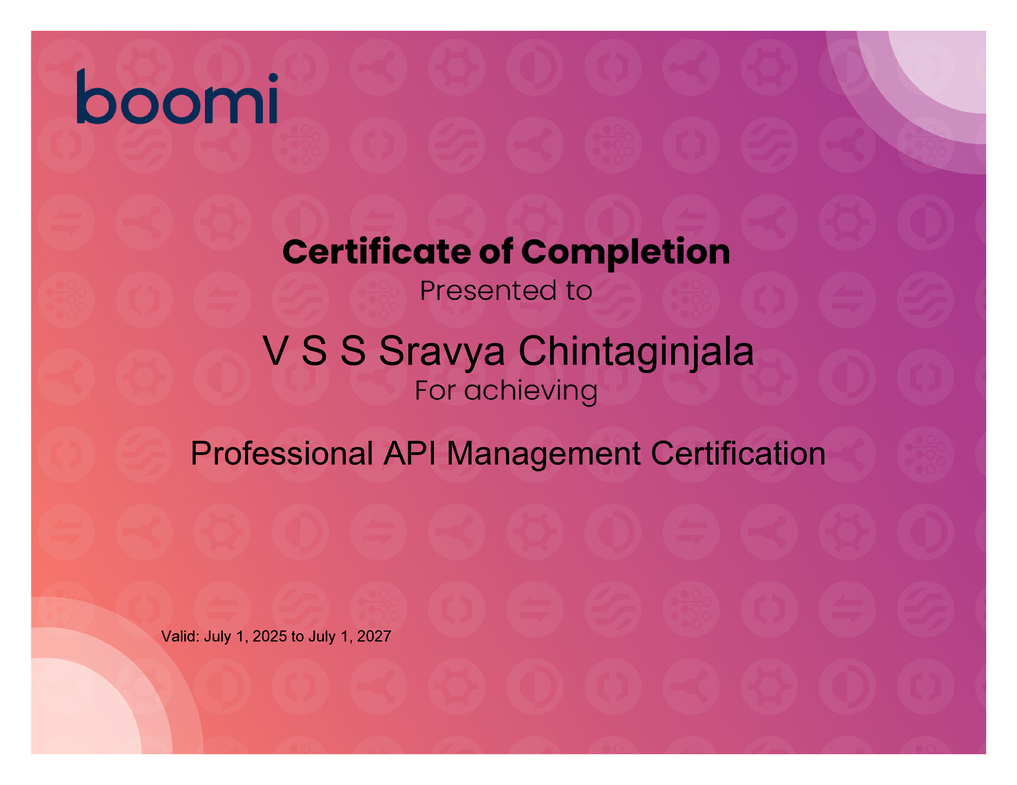 | Course Completed | Professional API Management Certification |