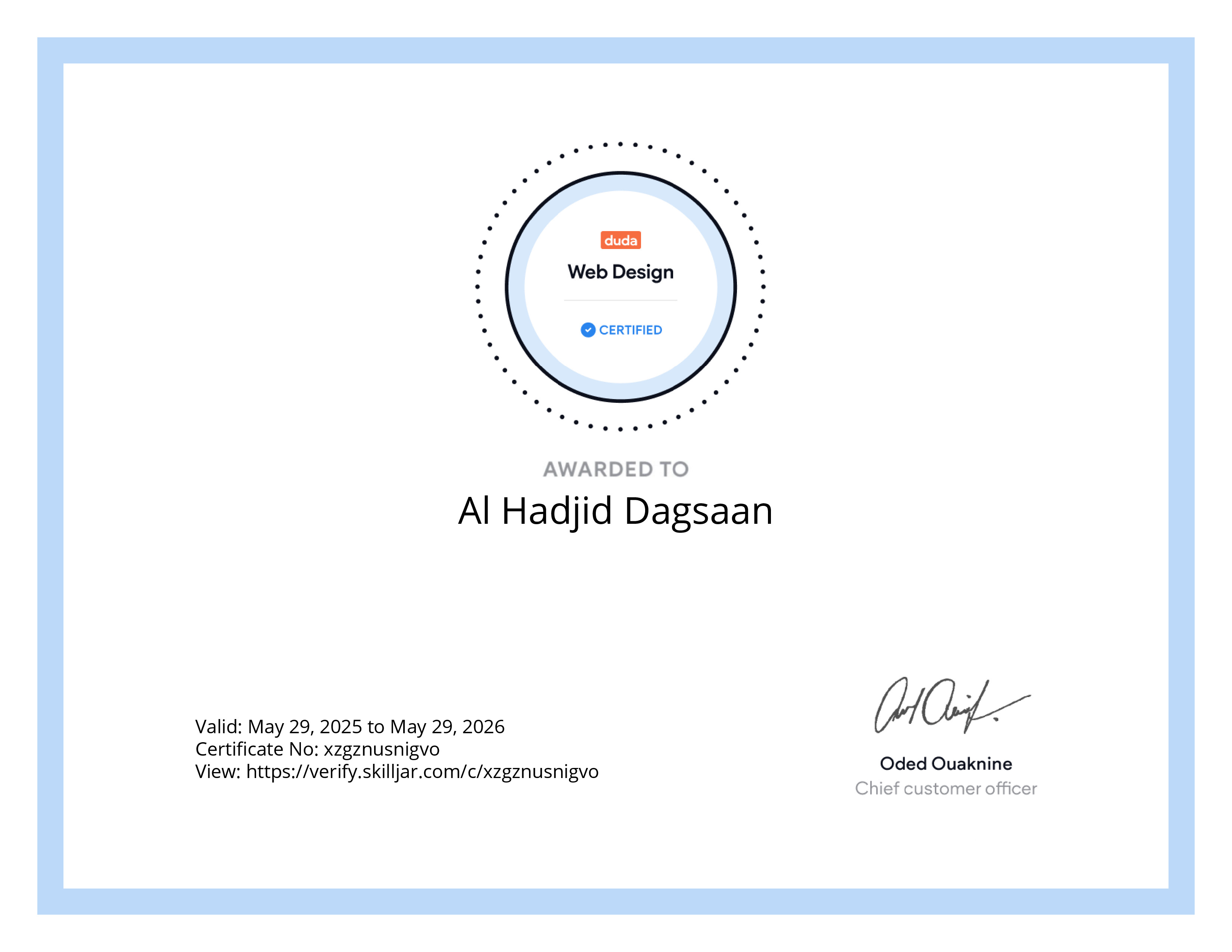 | Course Completed | Duda Certified in Web Design |