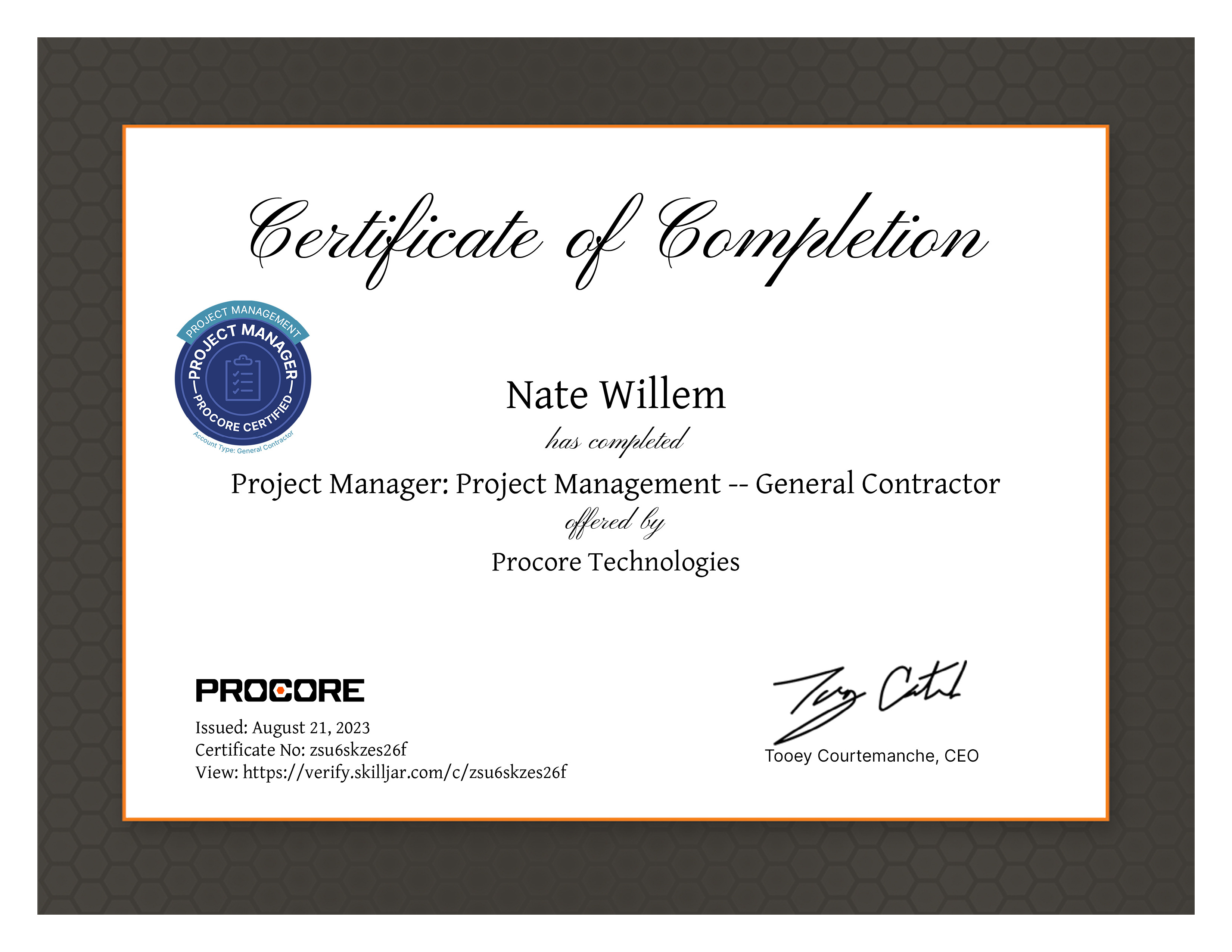 | Curso completado | Project Manager: Project Management -- General Contractor |