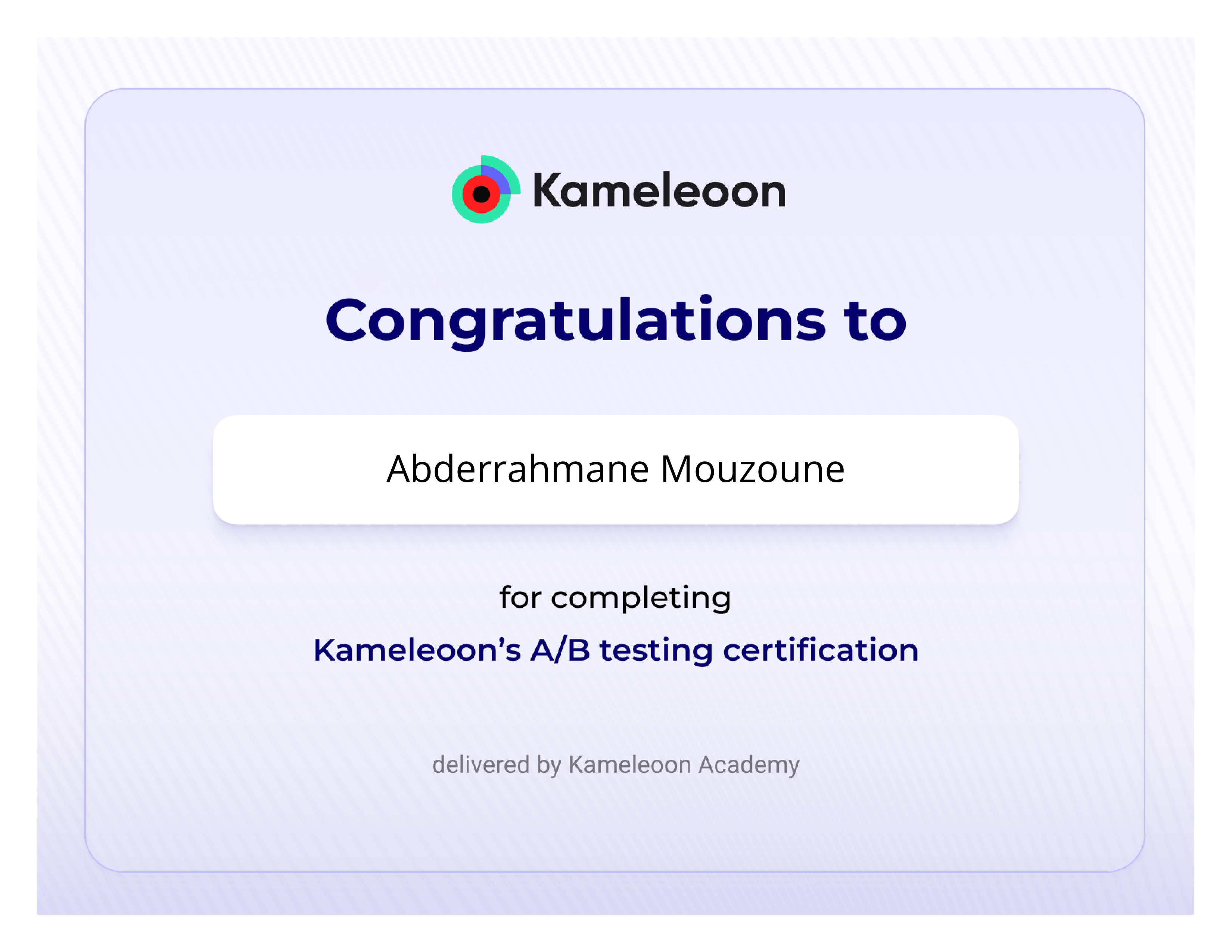 | Course Completed | Kameleoon's A/B Testing Certification Exam |