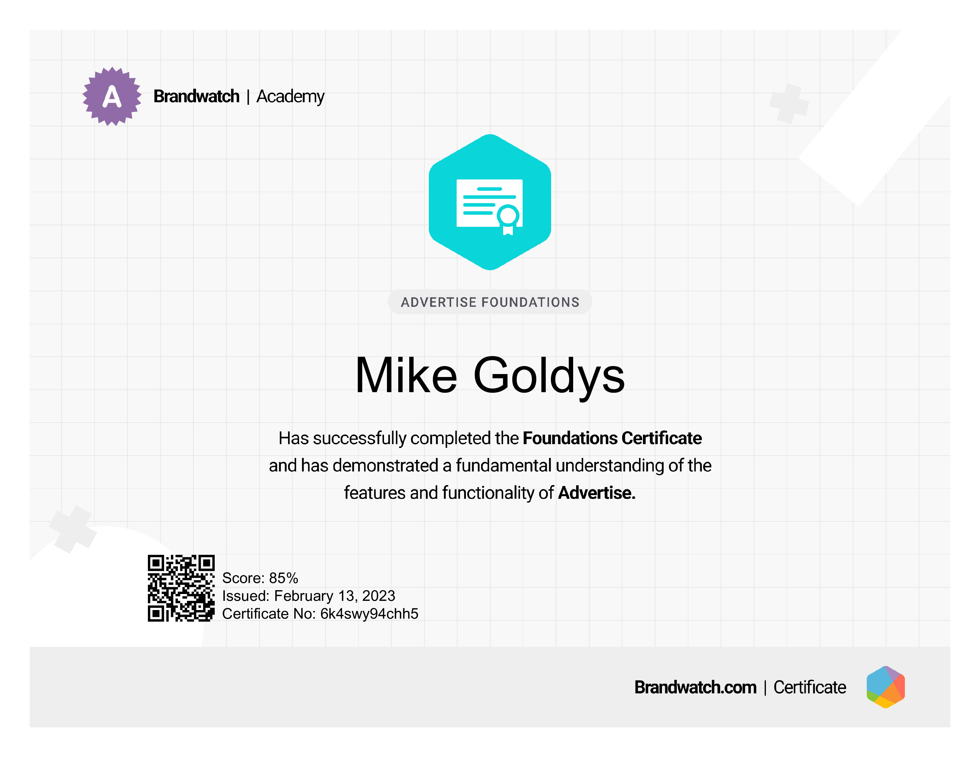 | Cours terminé | Earn your Advertise Foundations Certificate |