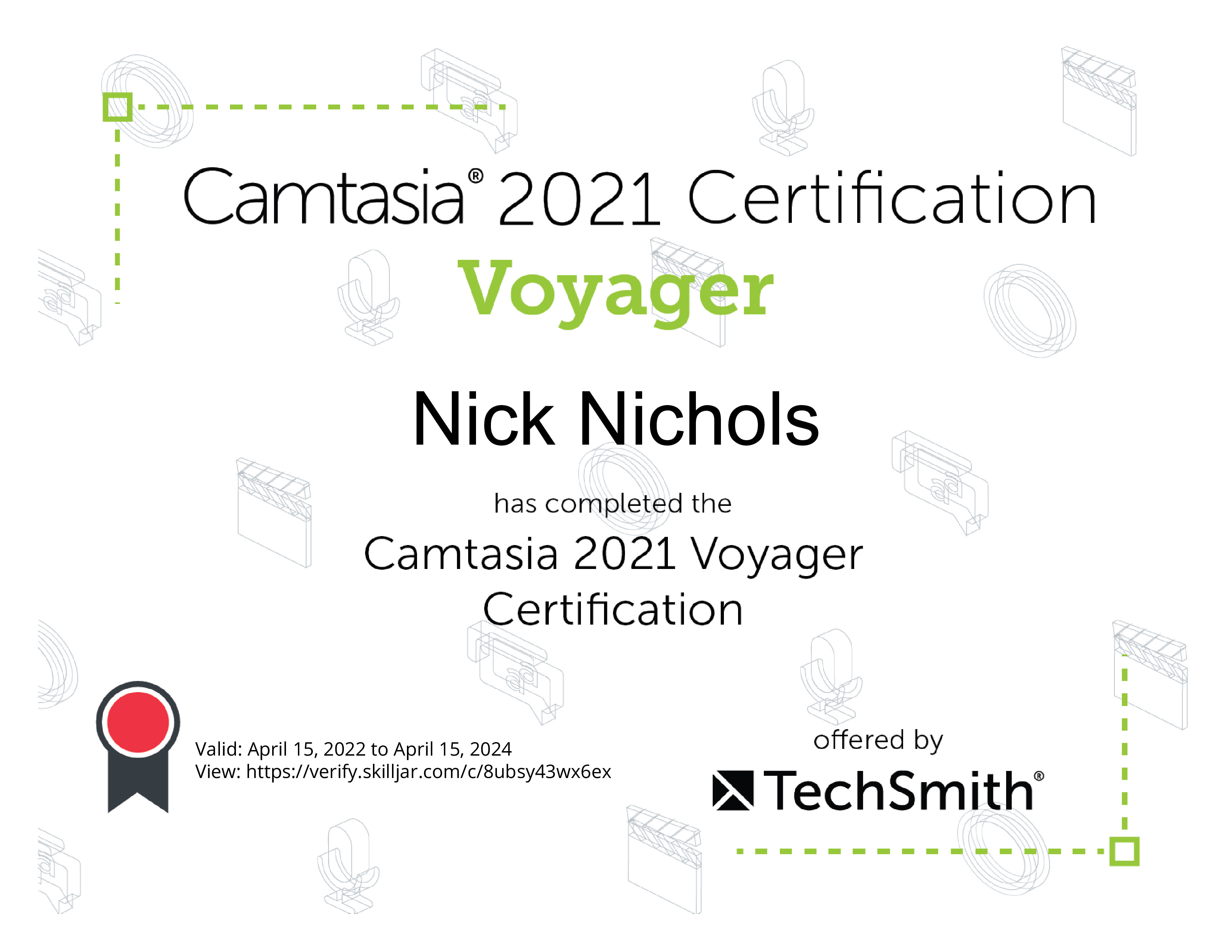 | Course Completed | 2021 Receive My Camtasia Voyager Certification |