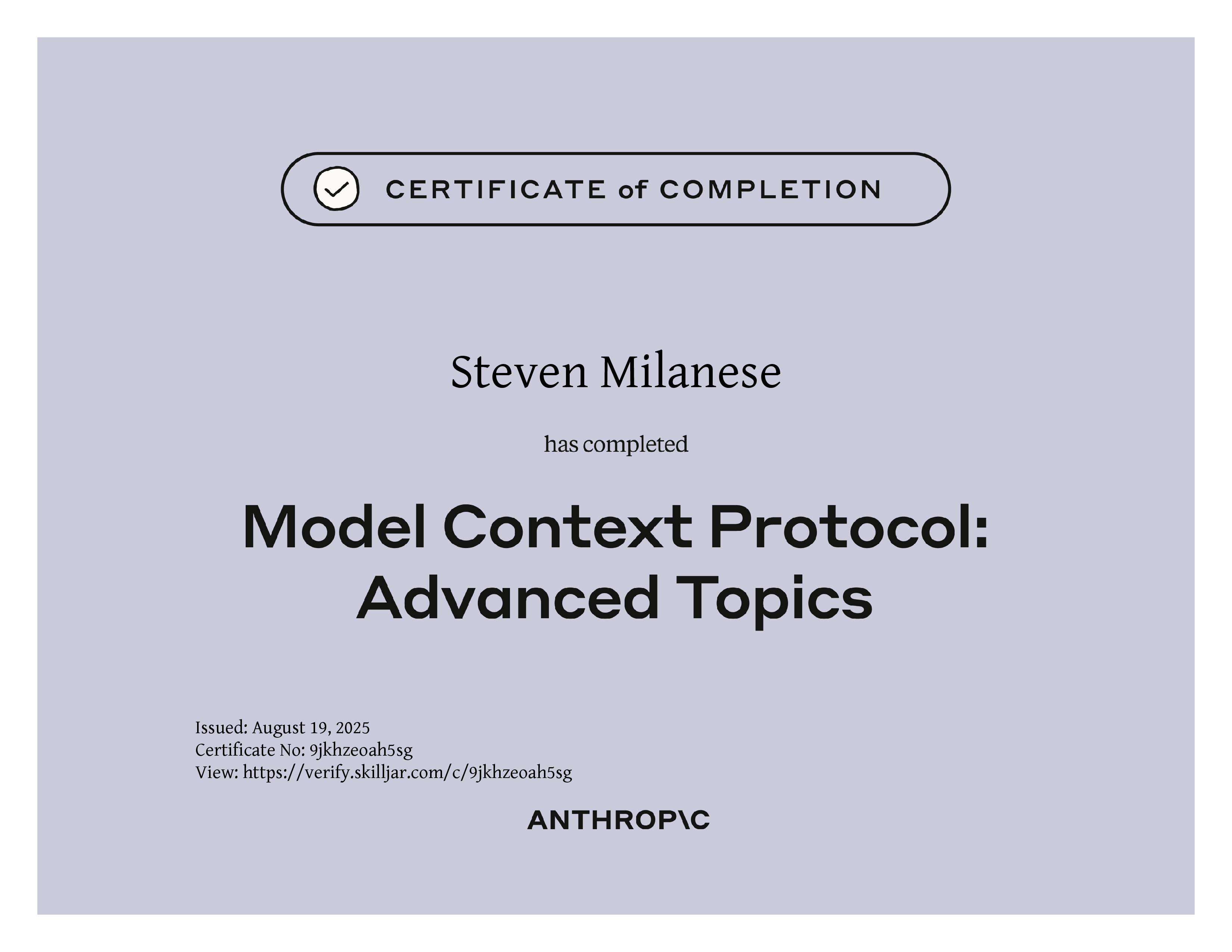 | Course Completed | Model Context Protocol: Advanced Topics |
