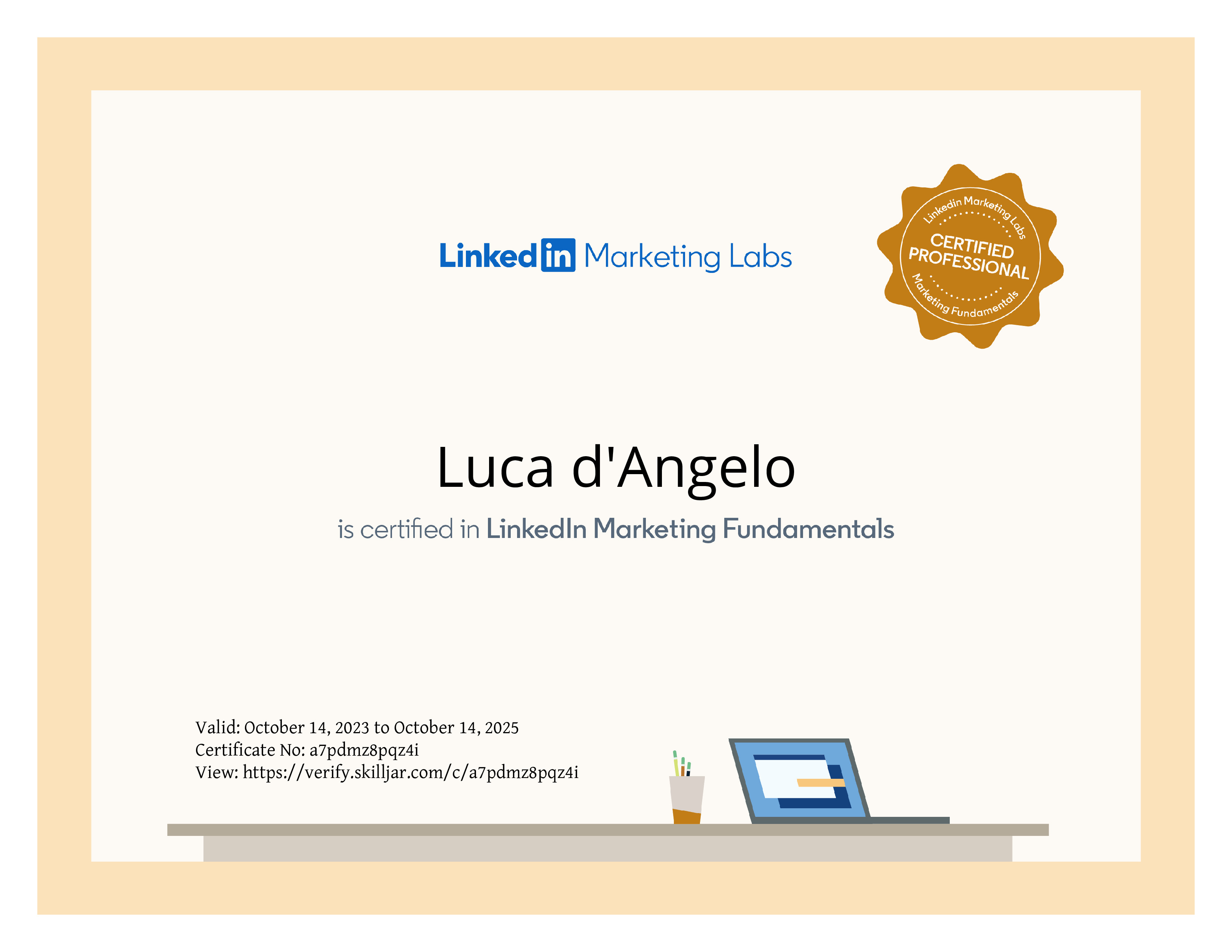| Abgeschlossener Kurs | LinkedIn Advertising Fundamentals Certification |