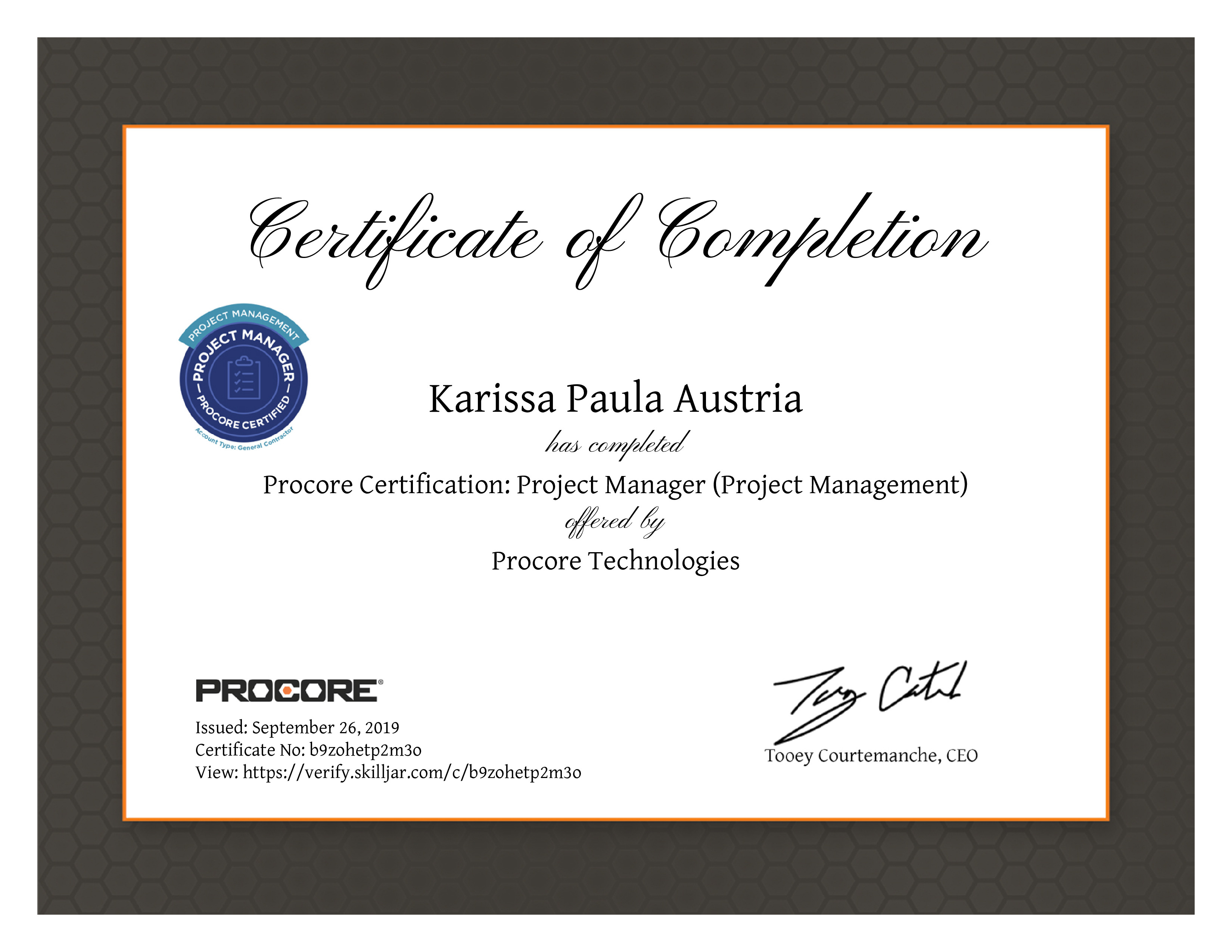 | Curso completado | Project Manager: Project Management -- General Contractor |