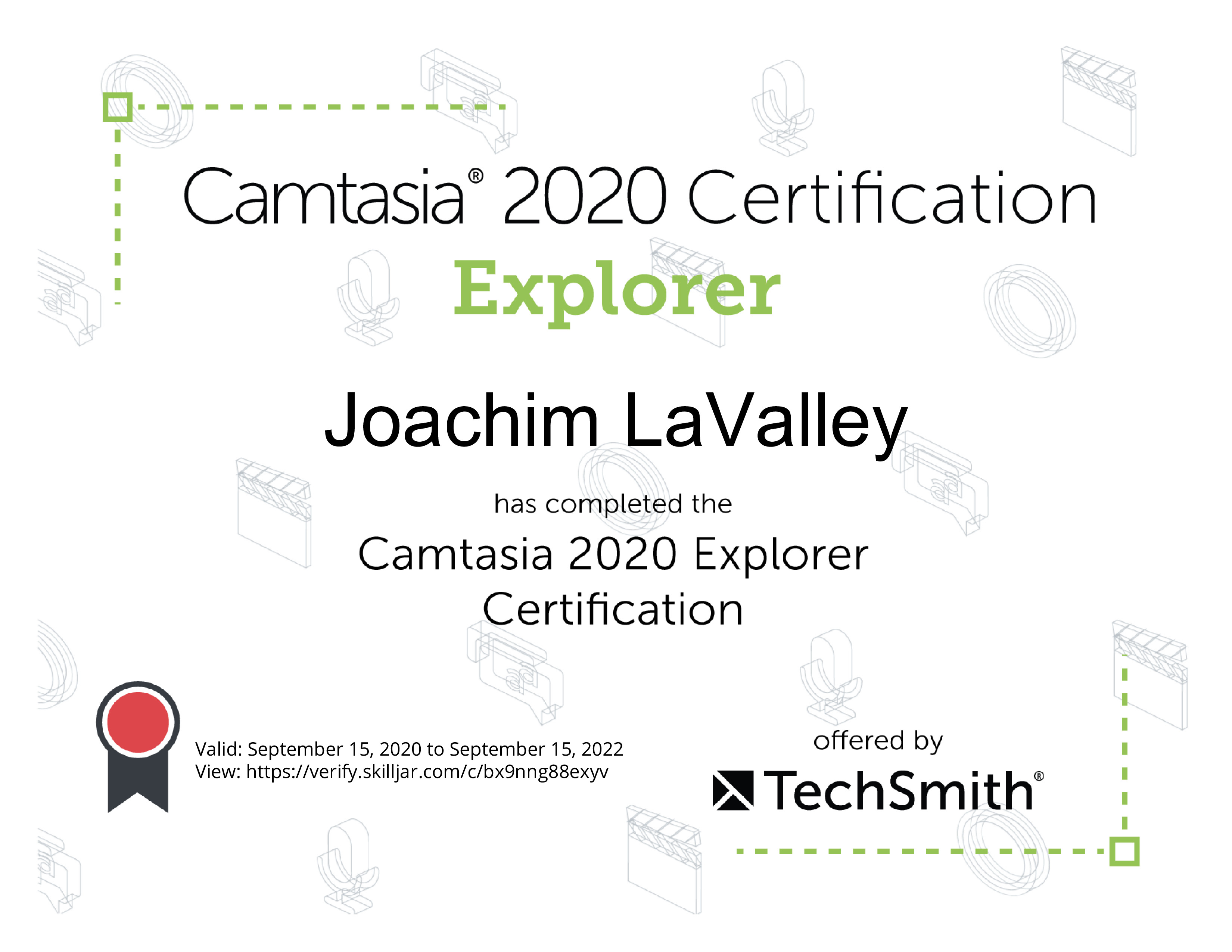 | Course Completed | Receive My Camtasia 2020 Explorer Certification |