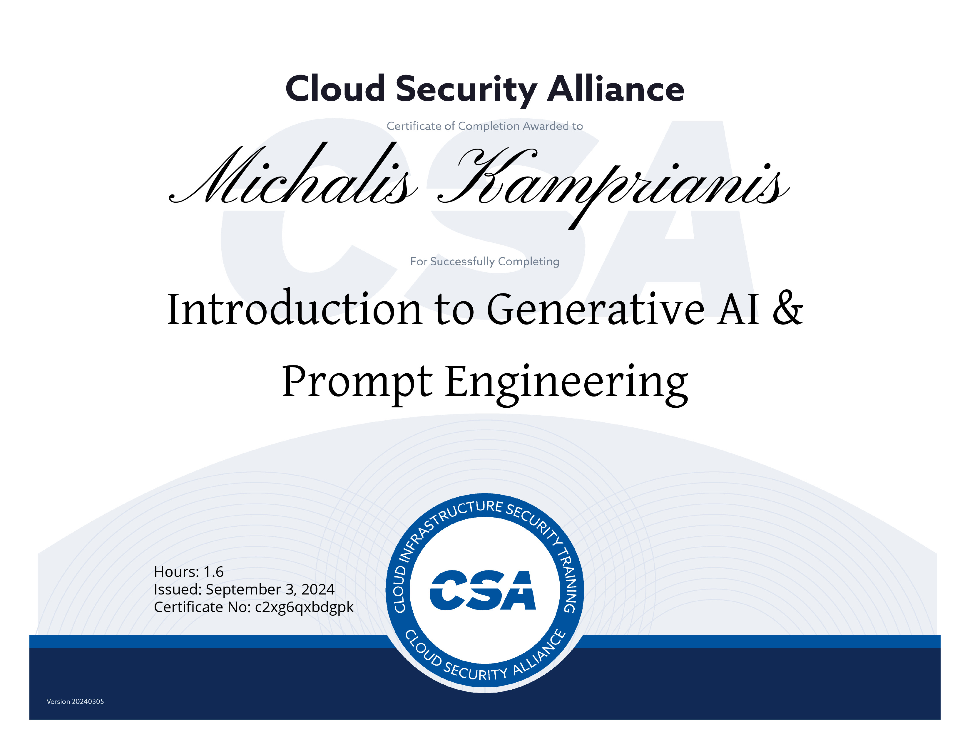 | Course Completed | Introduction to Generative AI & Prompt Engineering |