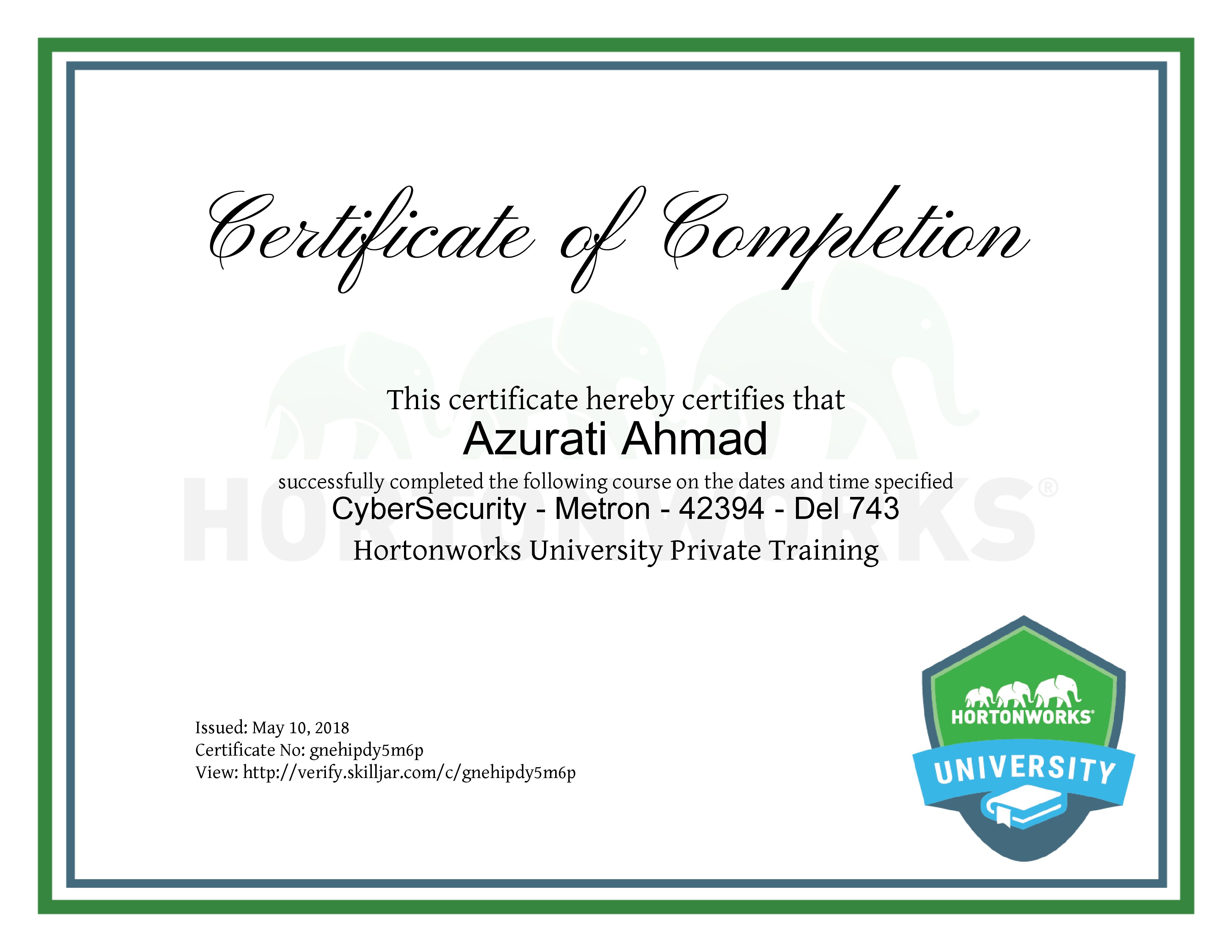 | Course Completed | CyberSecurity - Metron - 42394 - Del 743 |