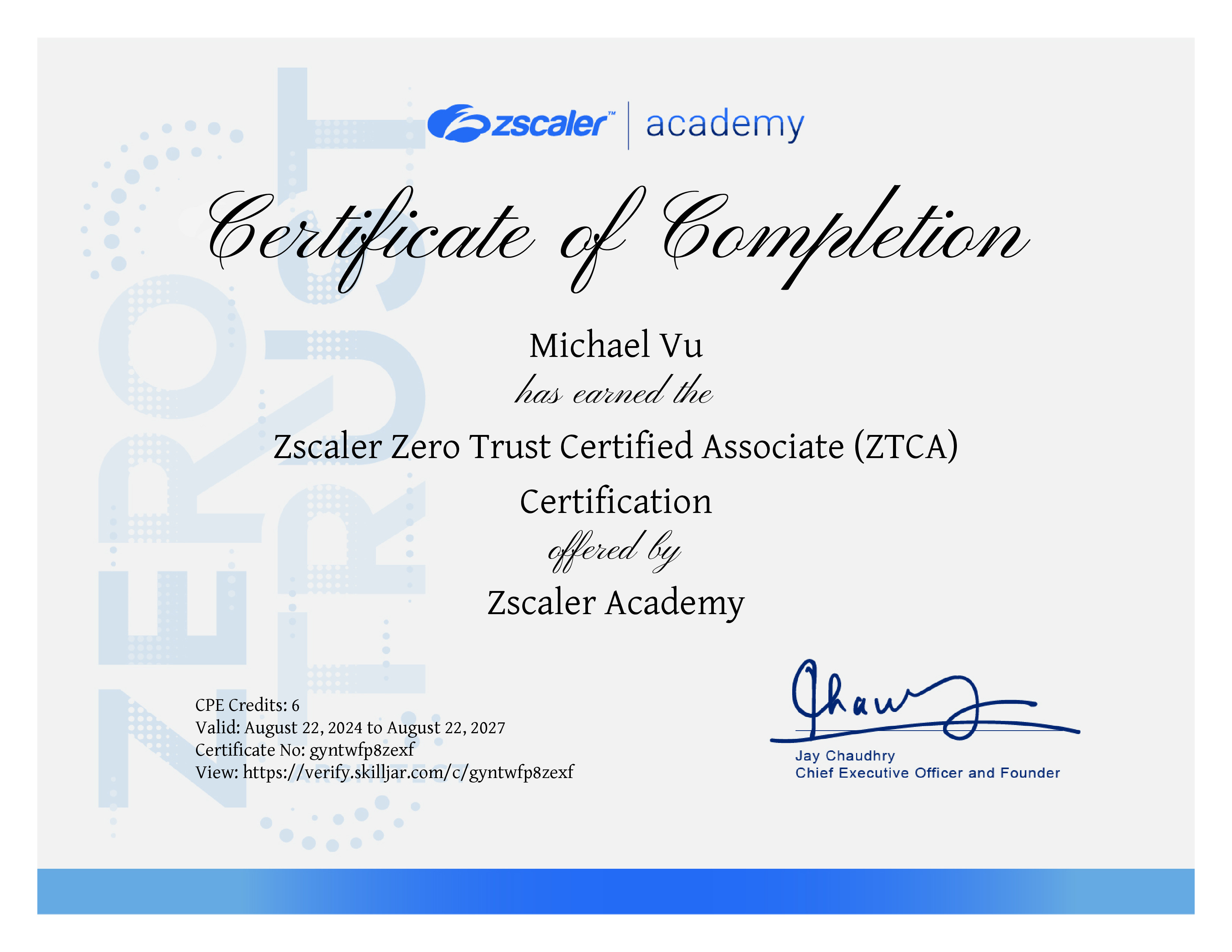 | Course Completed | Zero Trust Cyber Associate (ZTCA) Exam |
