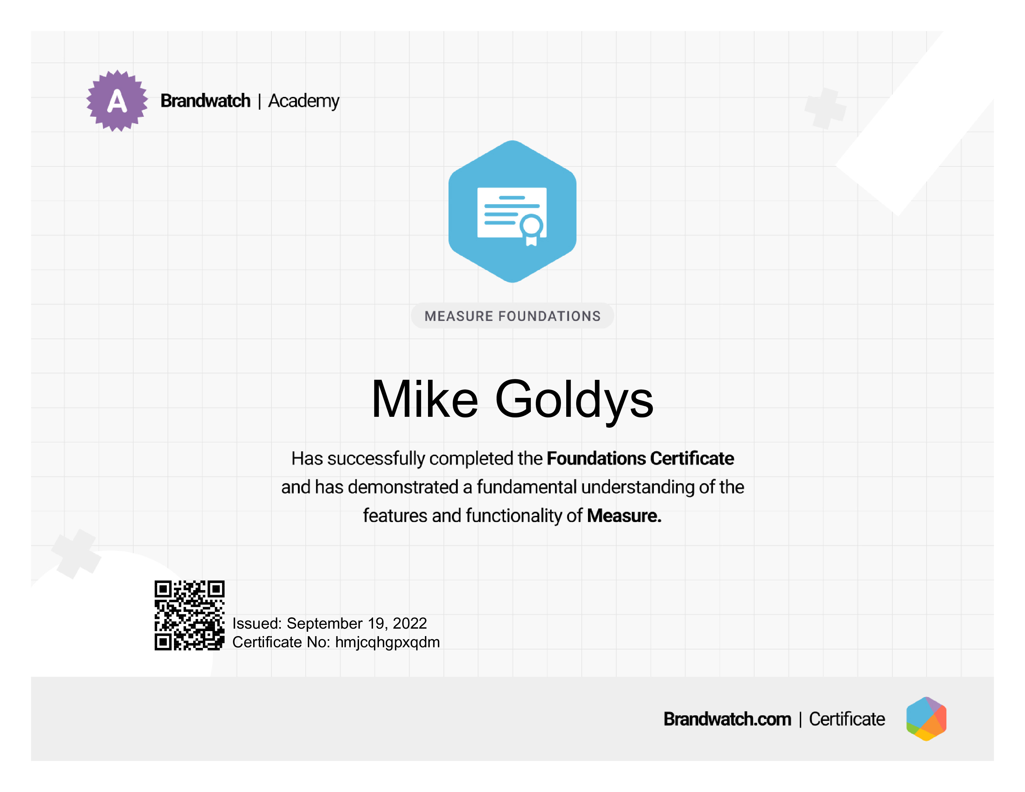 | Cours terminé | Earn your Measure Foundations Certificate |
