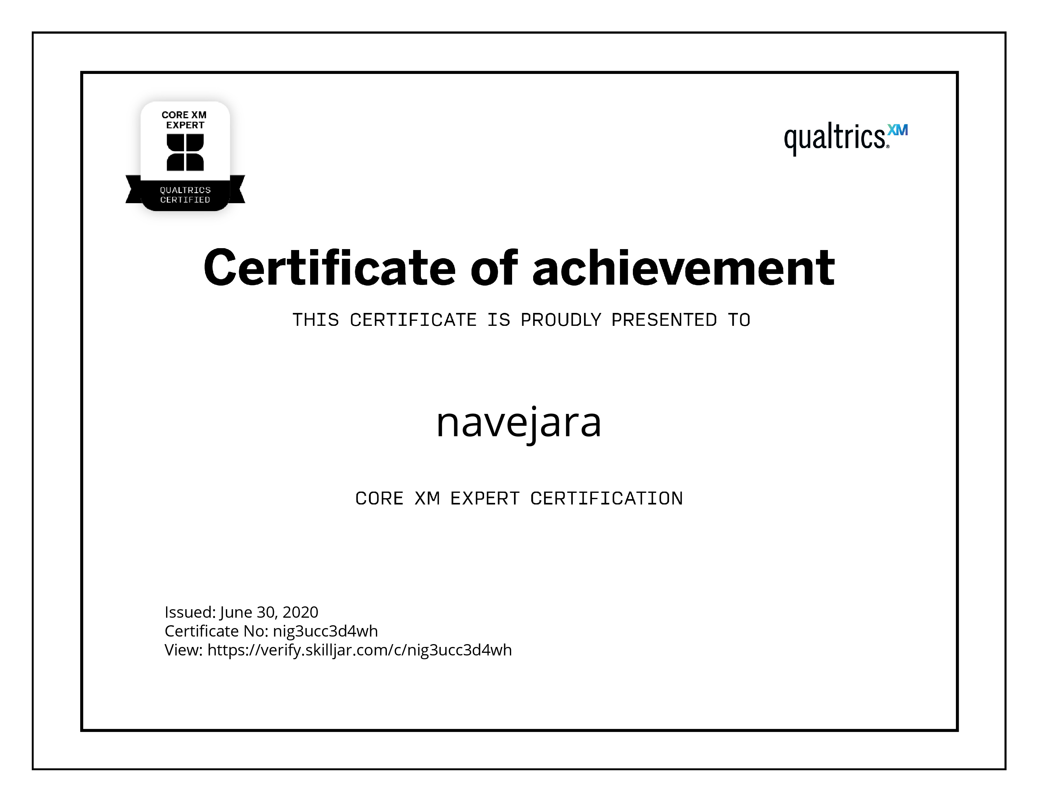 | Course Completed | Certification: XM for Strategy & Research Expert |