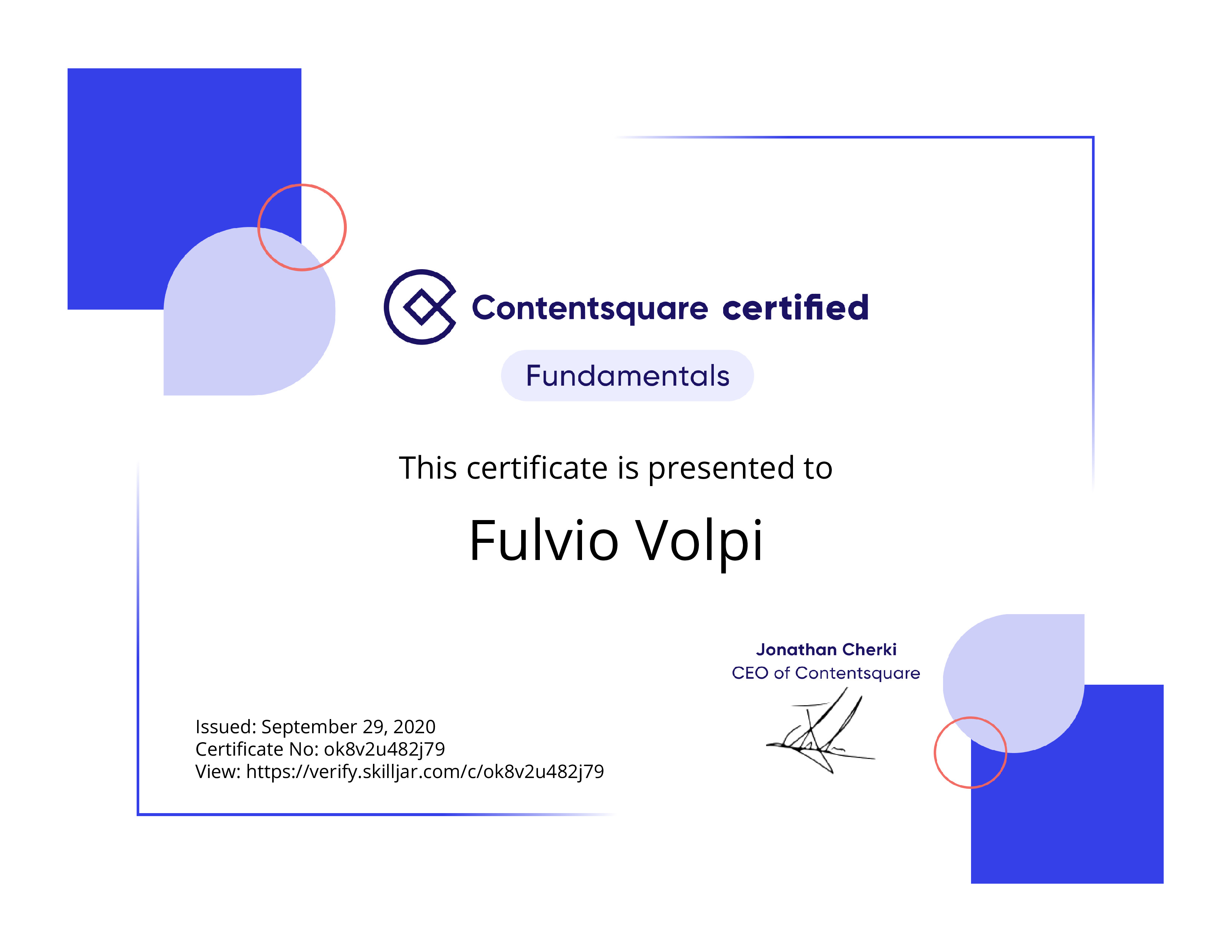 | Course Completed | Experience Analytics Web Fundamentals Certification |