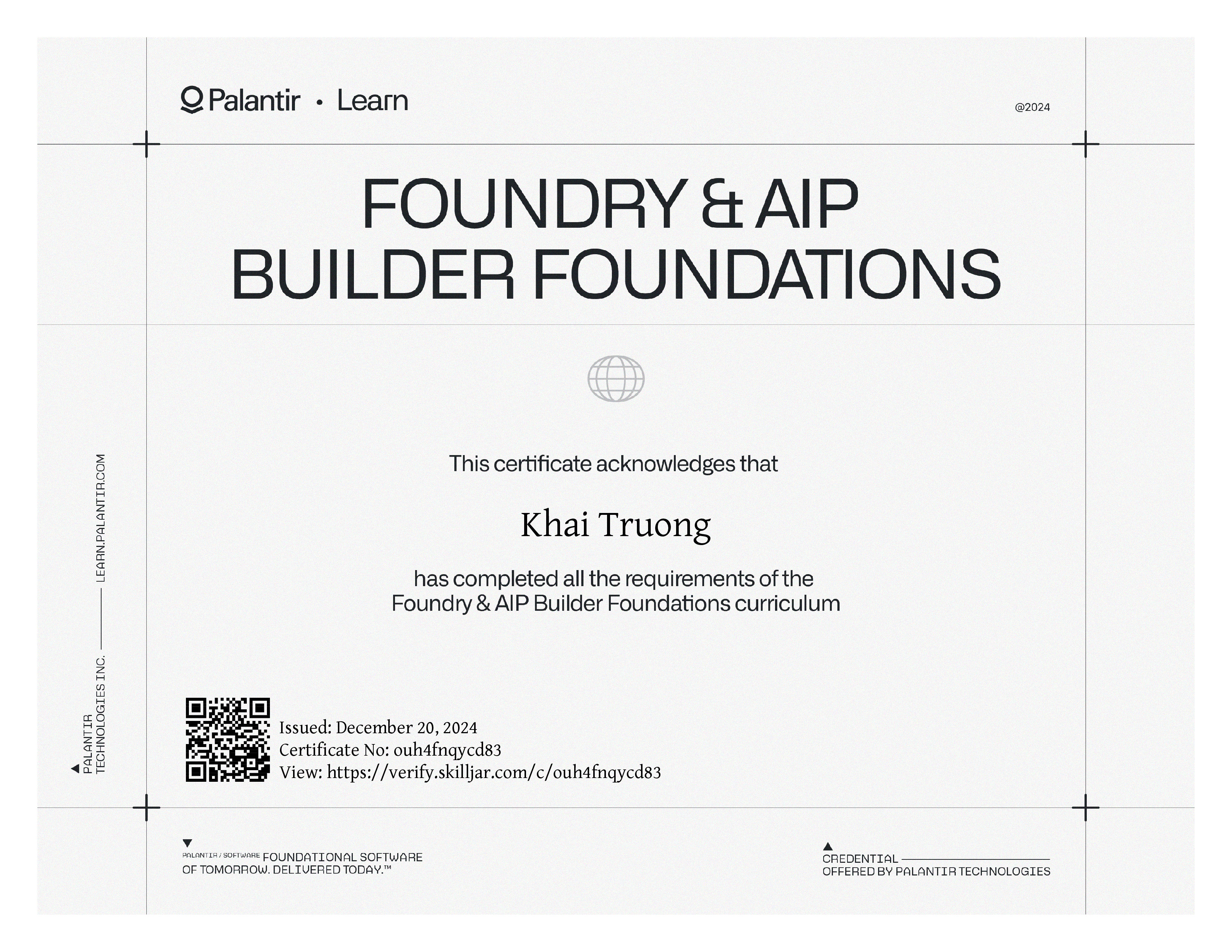 | Course Completed | Foundry & AIP Builder Foundations Quiz |