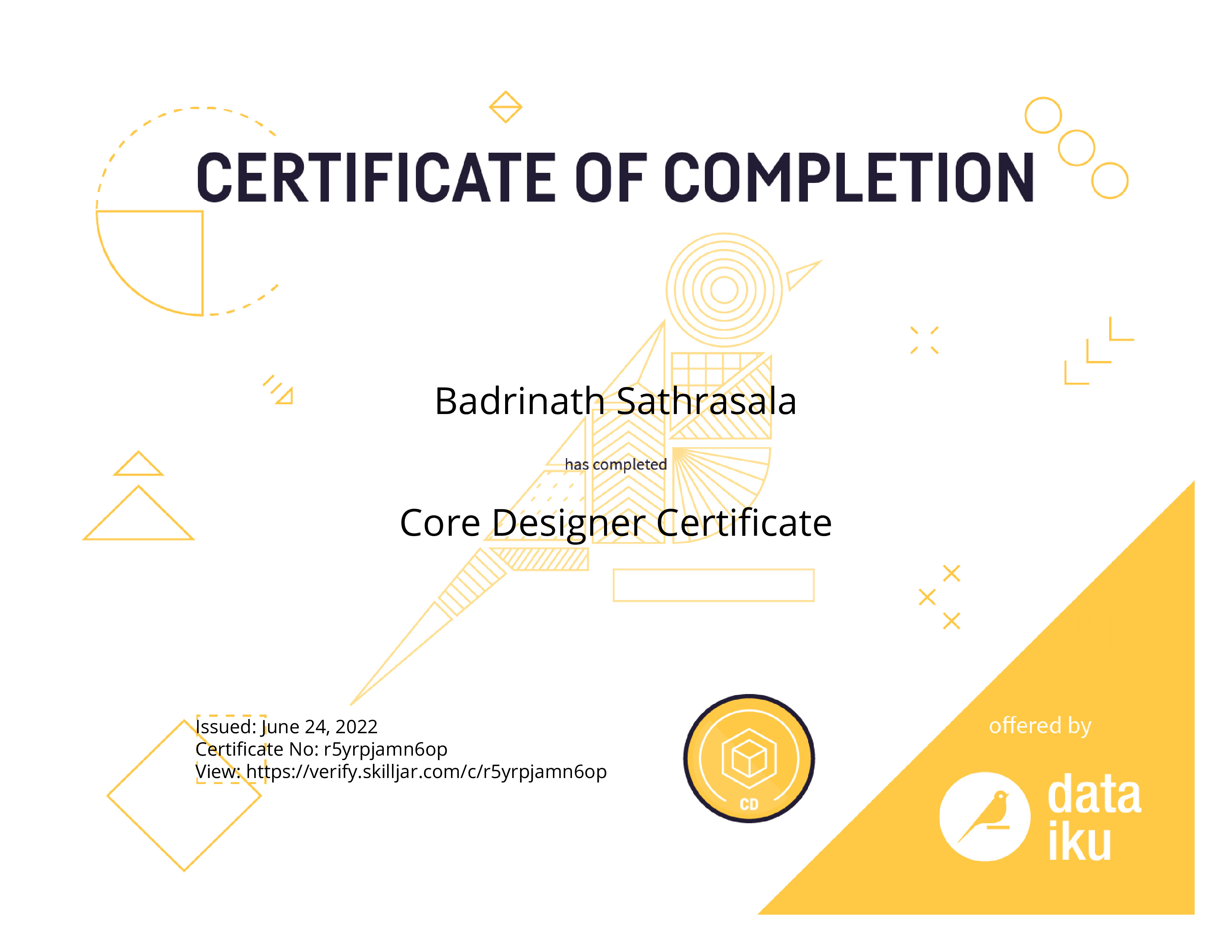 Course Completed Core Designer Certificate