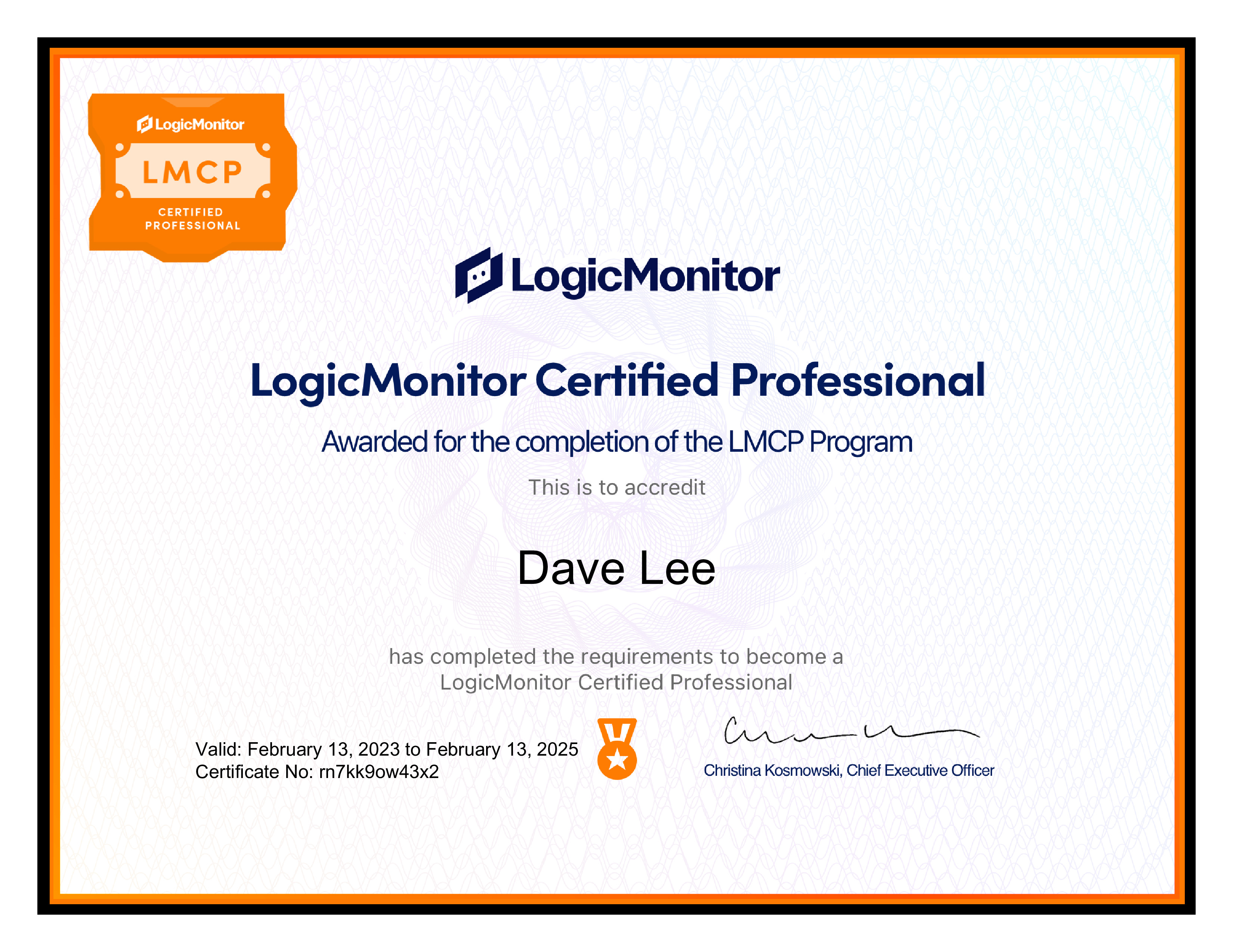 | Course Completed | Certified Professional (LMCP) Exam |