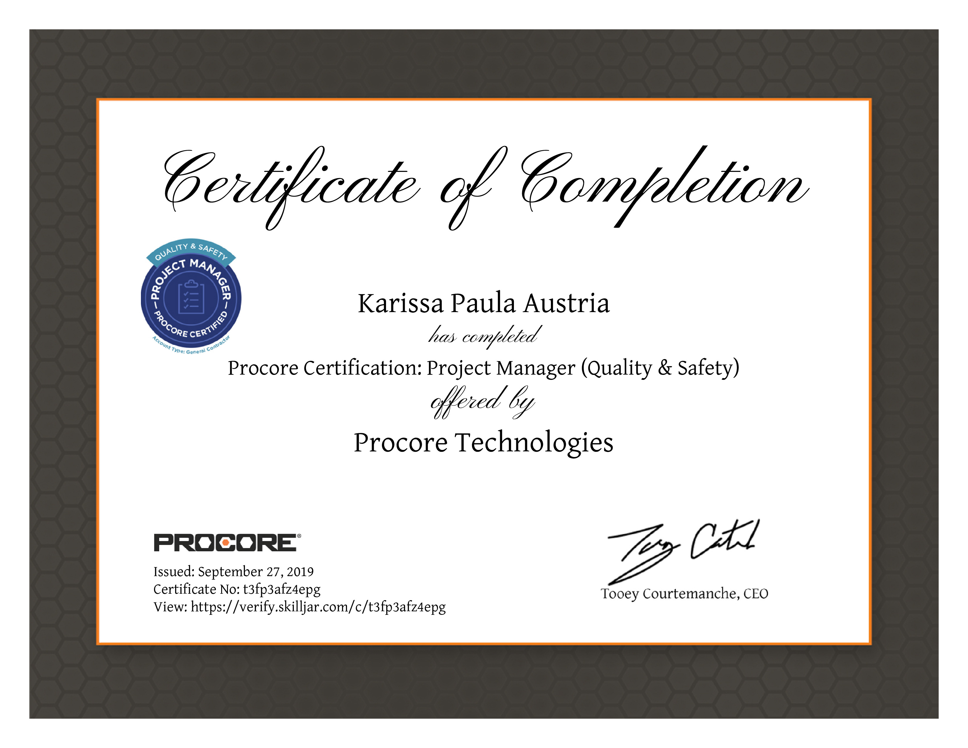 | Curso completado | Project Manager: Quality & Safety -- General Contractor |