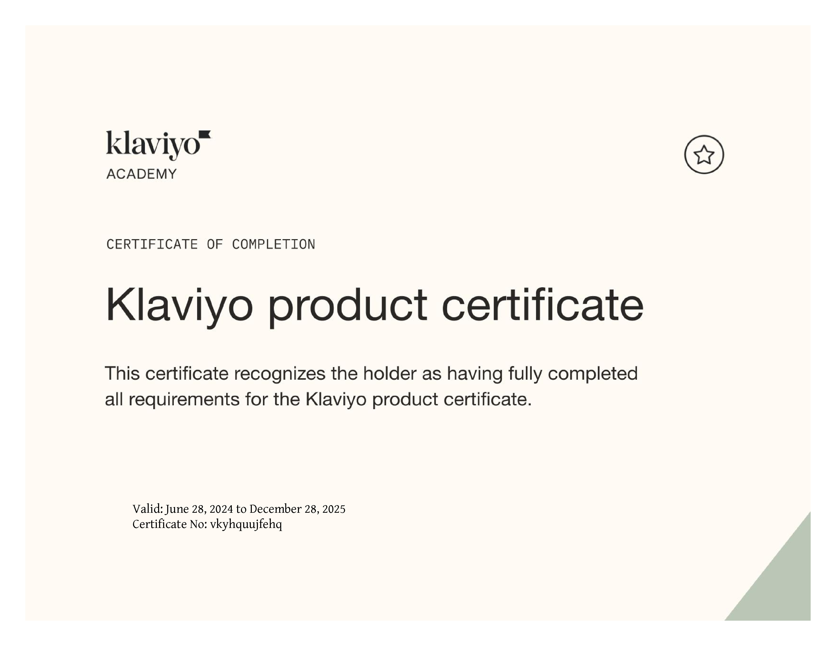 | Course Completed | Product certificate - conclusion and certificate exam |