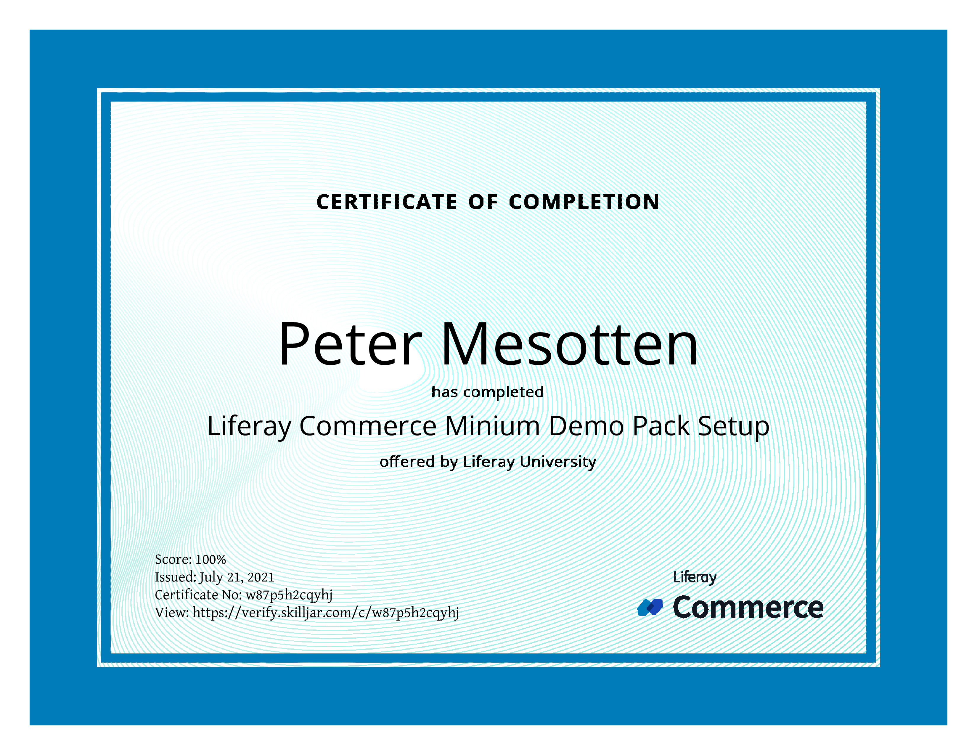 | Course Completed | Liferay Commerce Minium Demo Pack Setup |