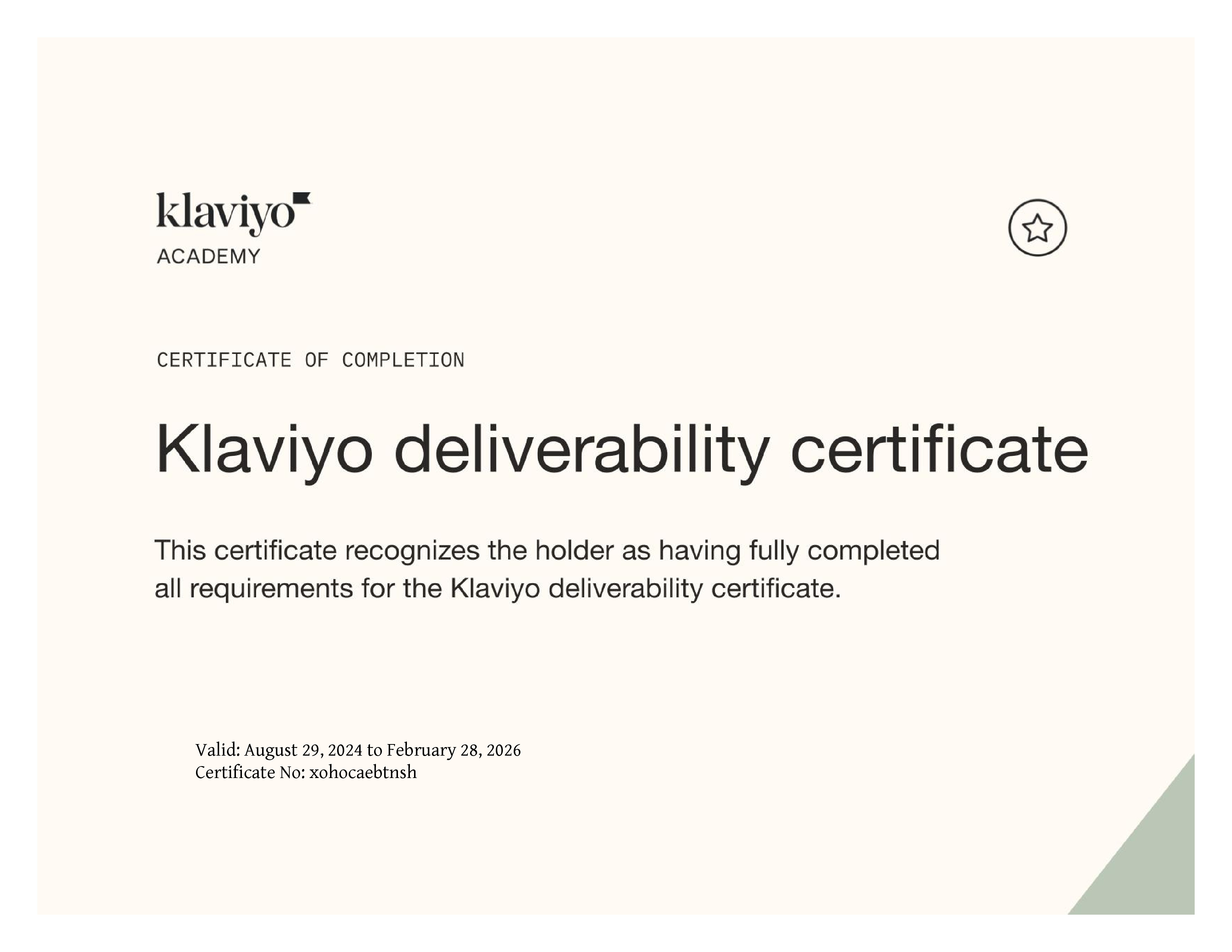 | Course Completed | Deliverability certificate conclusion and final exam |
