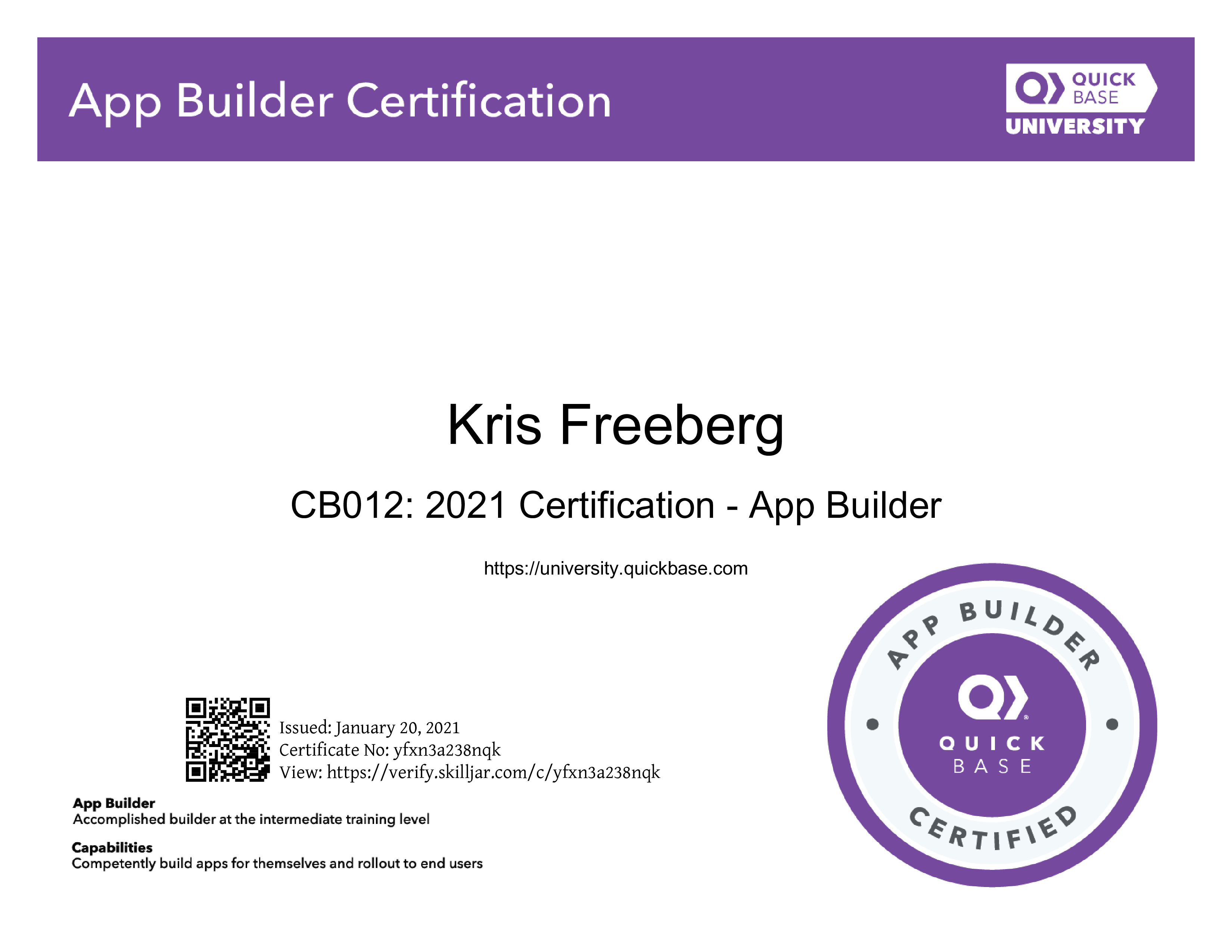 | Course Completed | CB012: 2021 Certification - App Builder |