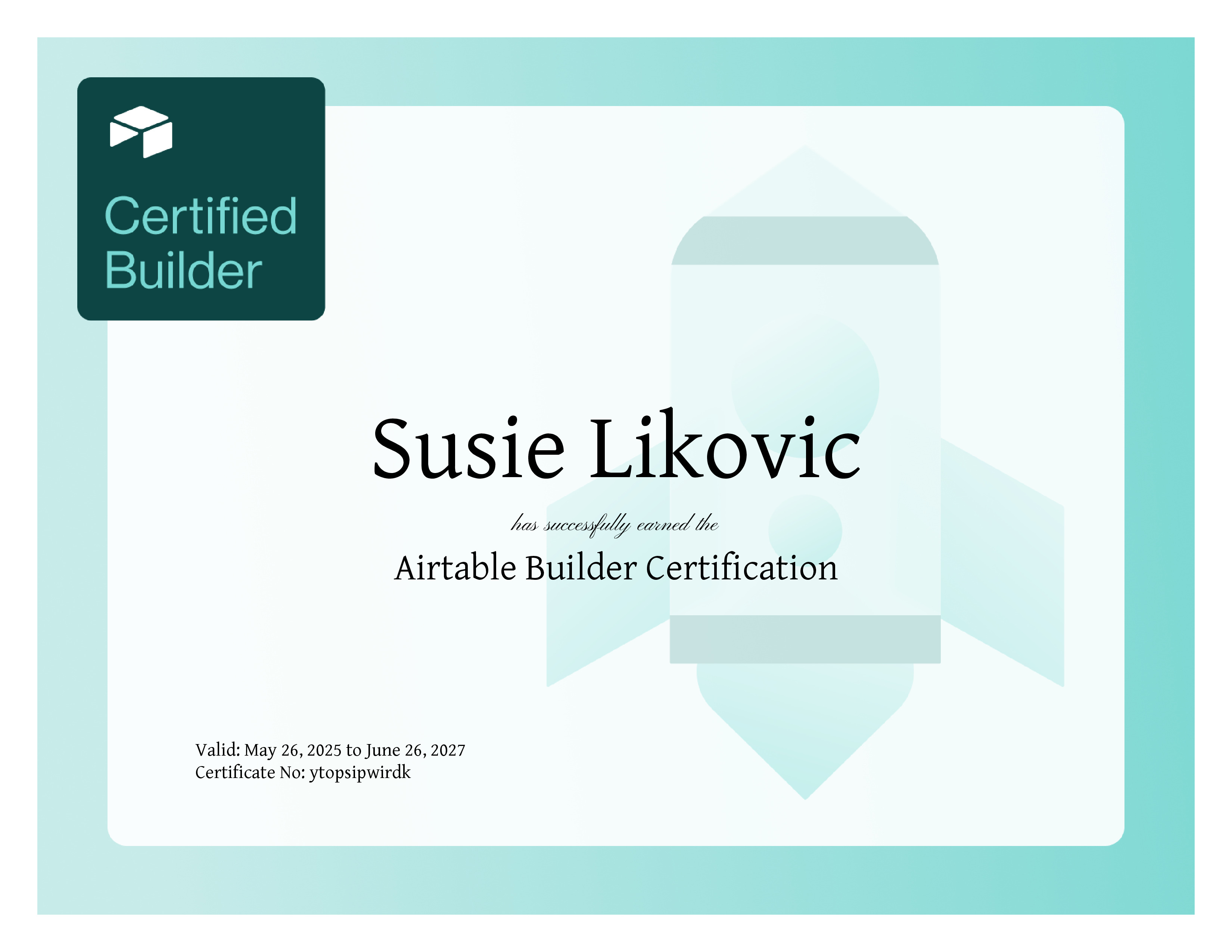 | Course Completed | Certification: Airtable Builder |